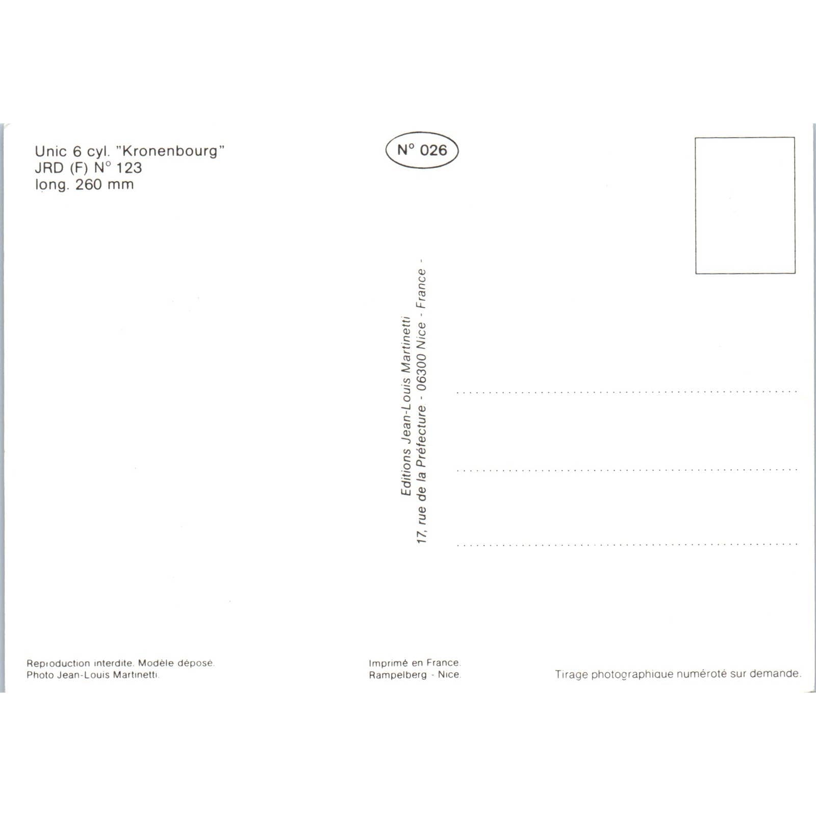 Unic 6 cyl Kronenbourg JRD N 123 French Toy Race Car Original Postcard TK1-P18
