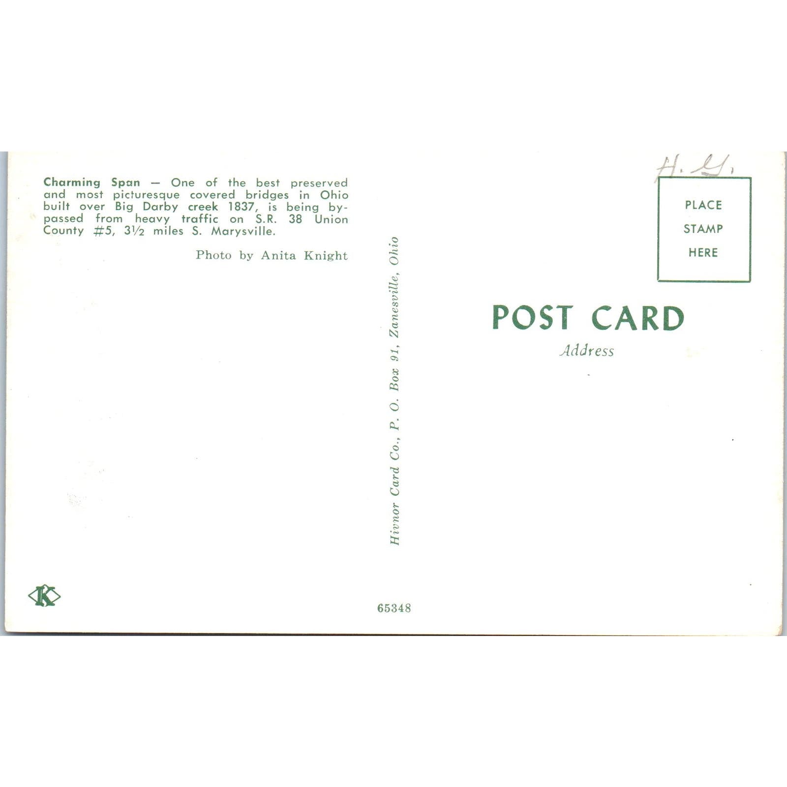 Union County 5 Big Darby Creek Marysville OH Vintage Covered Bridge Postcard PC14