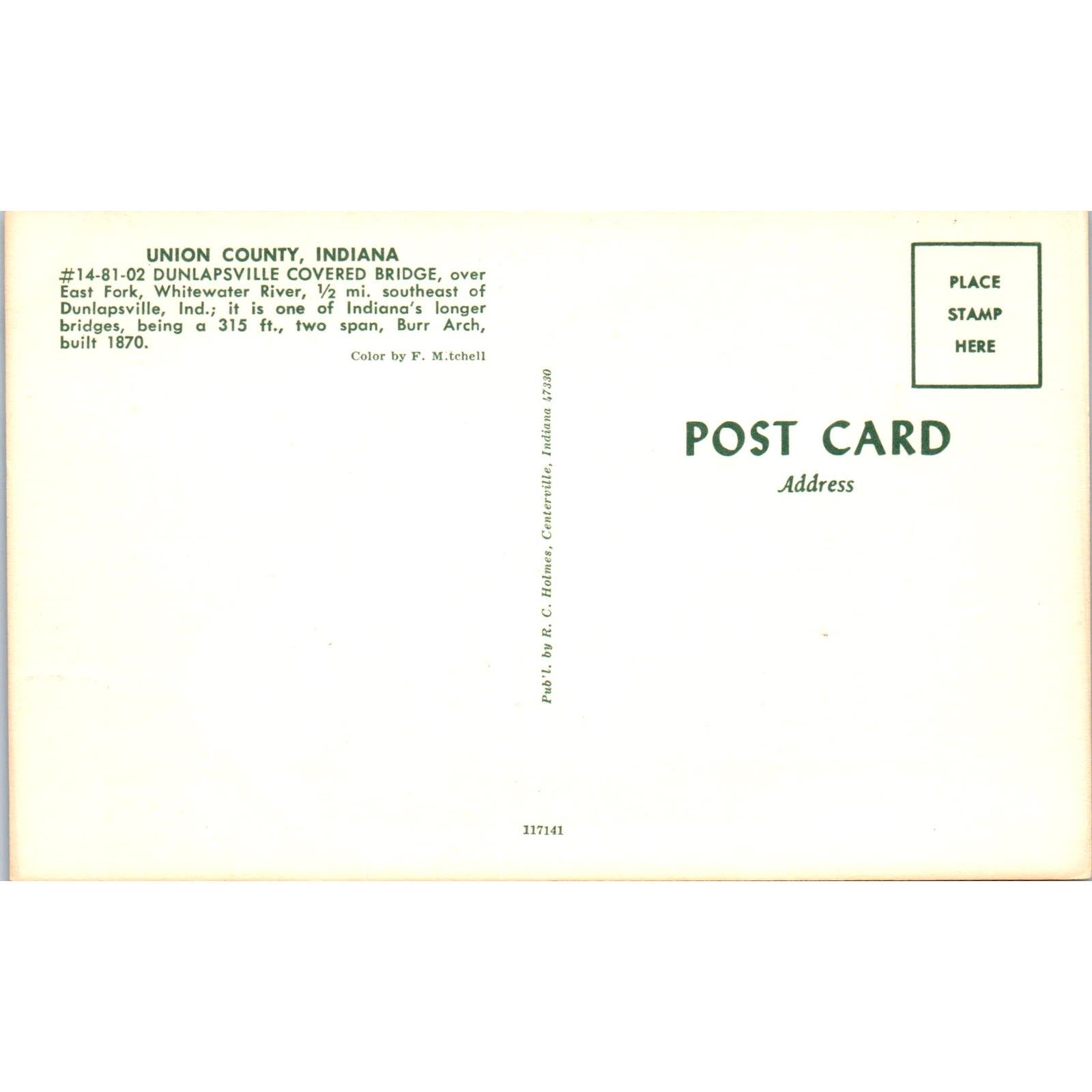Union County Indiana Dunlapsville Whitewater River Covered Bridge Postcard PC6