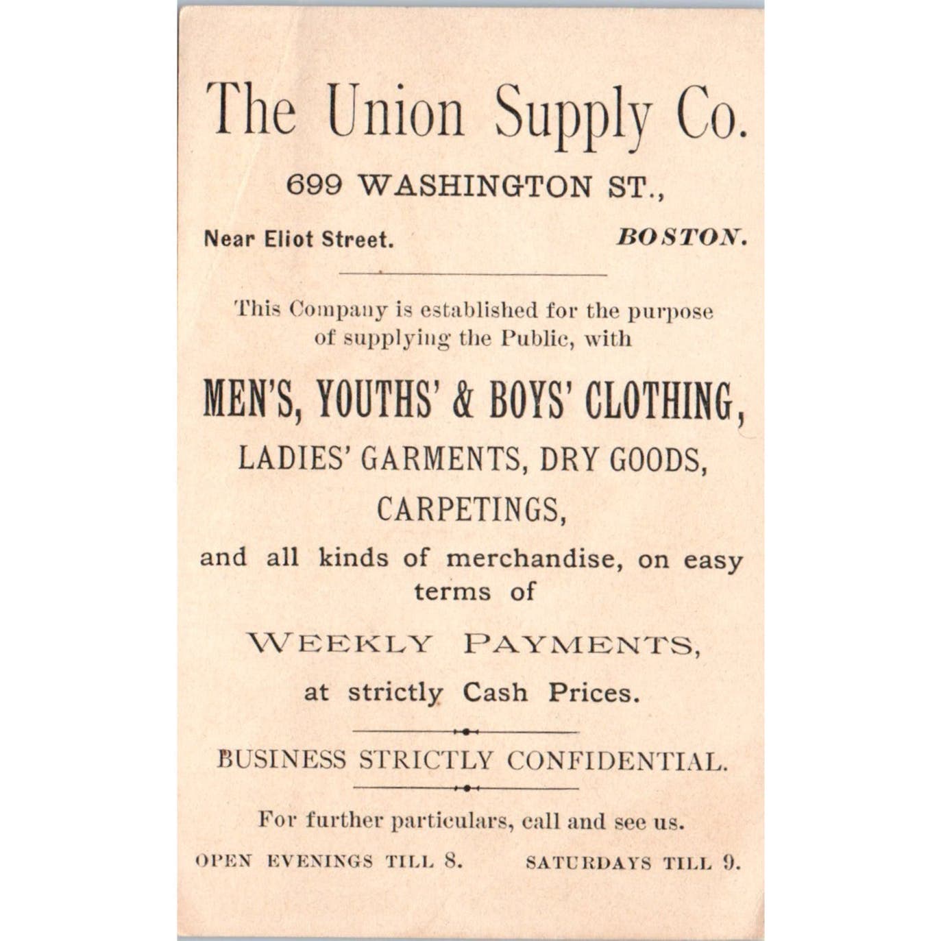 Union Supply Co Dry Goods Boston MA c1880 Victorian Trade Card AE5