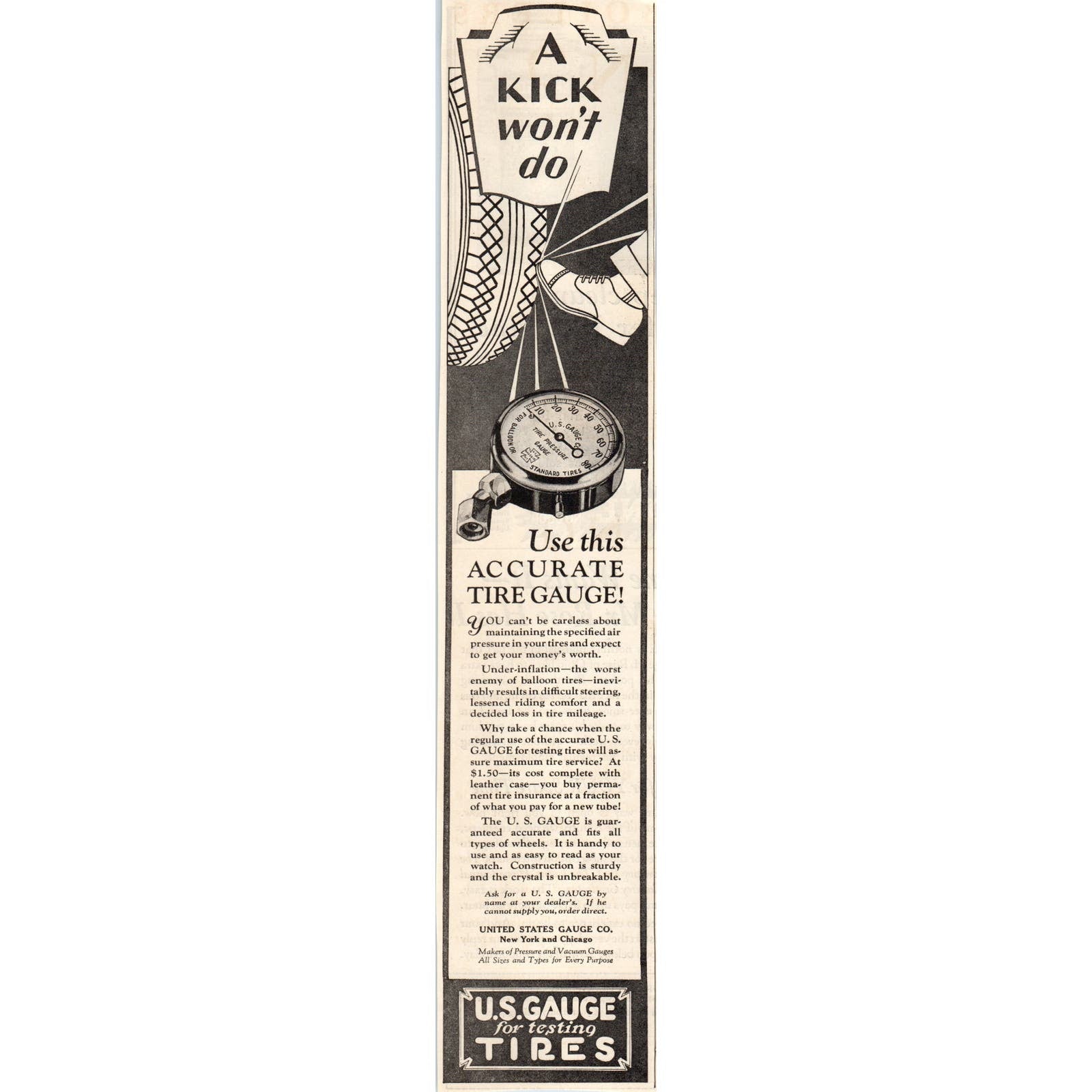 United States Gauge Co Tire Gauges 1928 Original Magazine Advertisement FL6-8