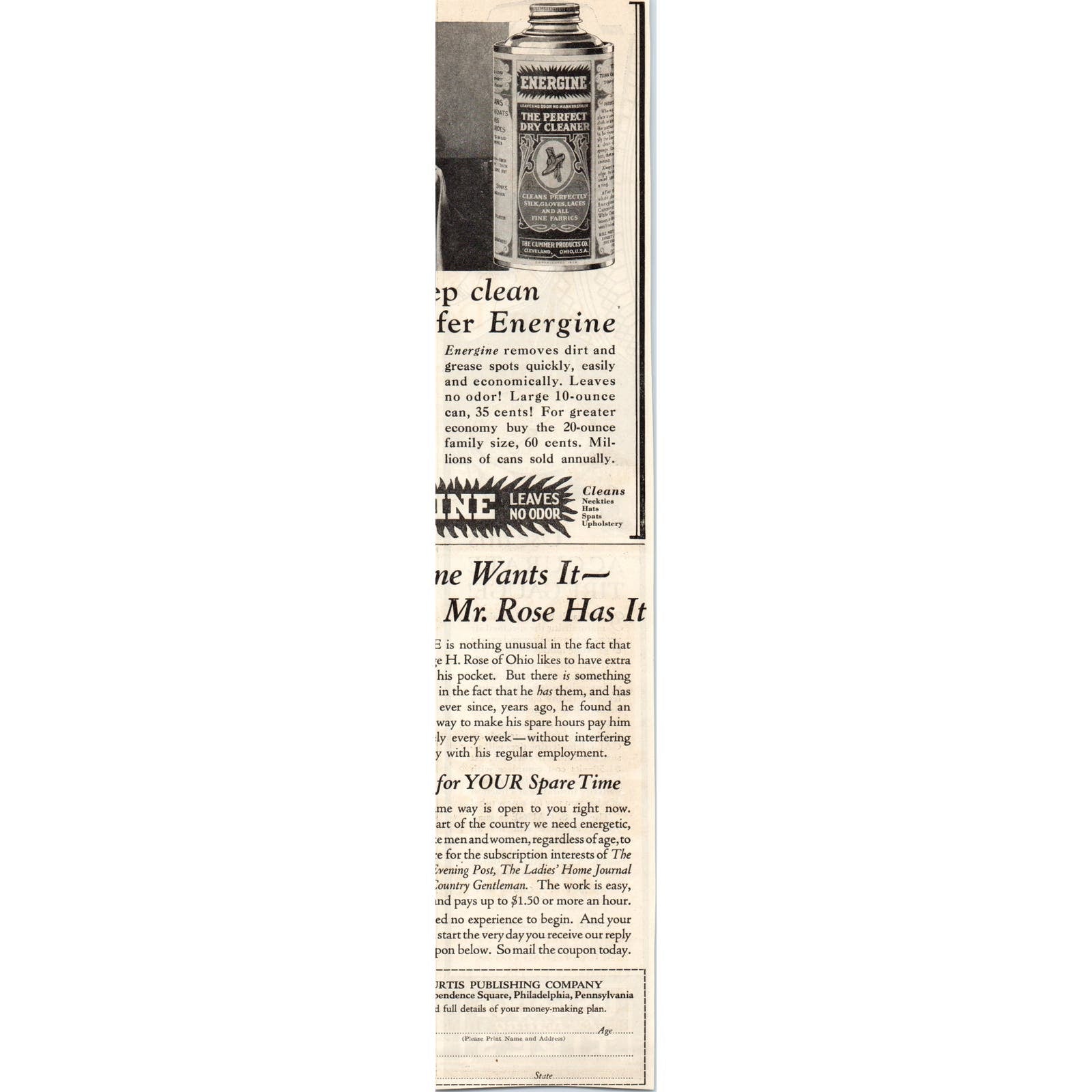 Will be folded in half to save on shipping. Measures approx 2.5x12" Taken from a c1928 Issue of The Saturday Evening Post. See pics for condition.