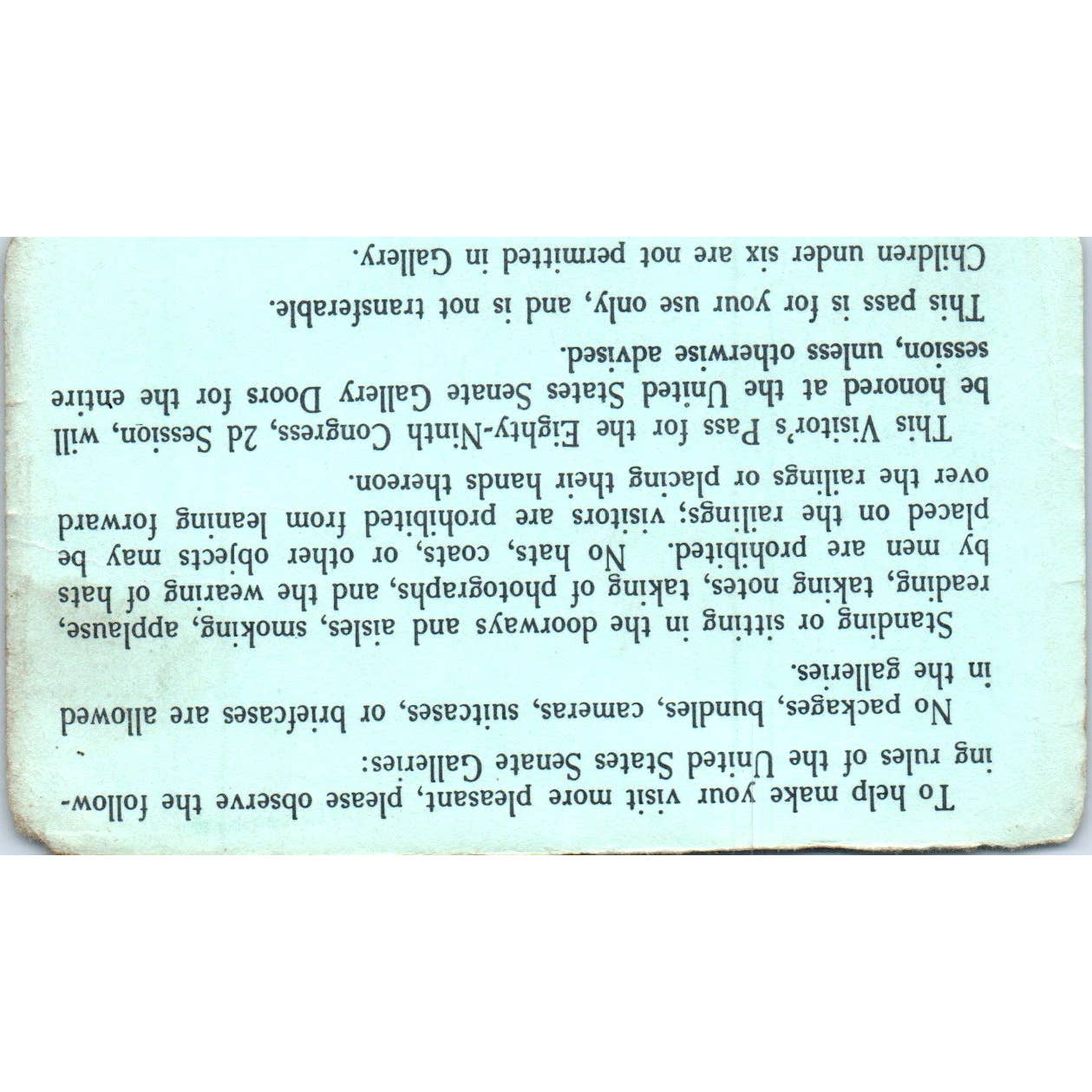 United States Senate Visitor Pass 1966 Signed George McGovern TK1-P6