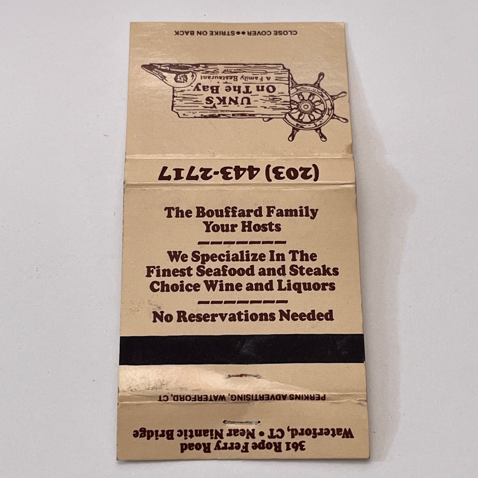 Unks on the Bay Family Restaurant Waterford CT Vintage Matchbook Cover TB6-MB1-9
