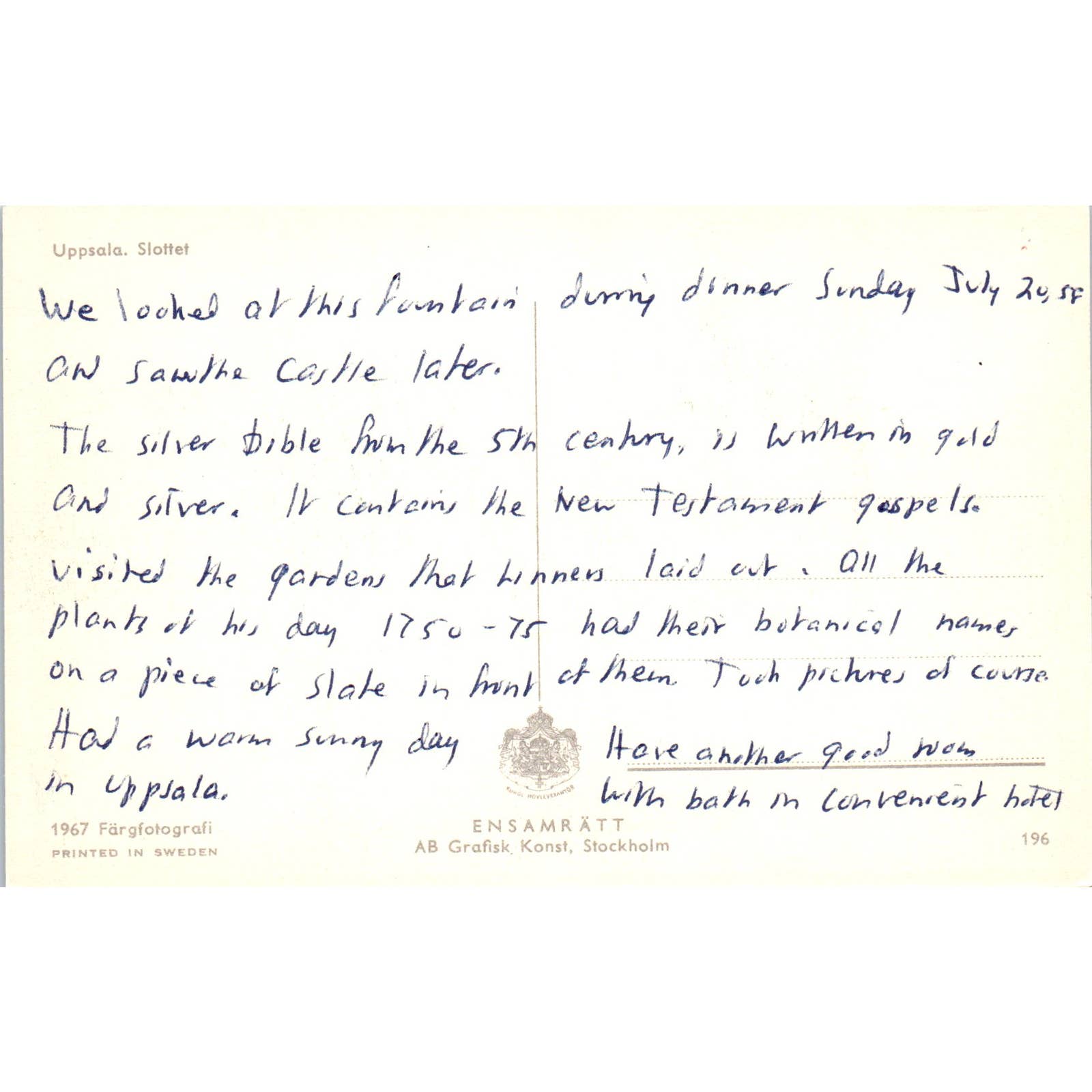 Uppsala Slottet 1967 Sweden Original Postcard TK1-21