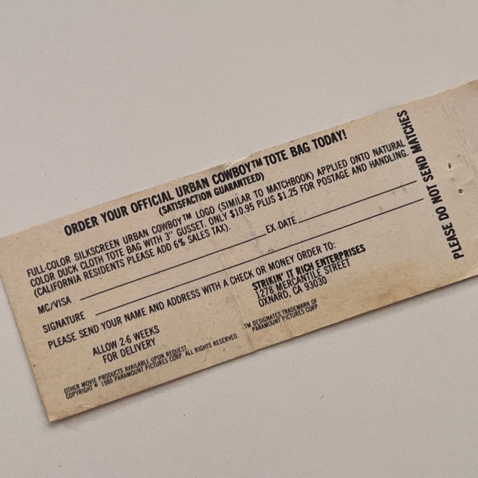 Urban Cowboy Tote Bag Oxnard CA Vintage Matchbook Cover TB6-MB2-2