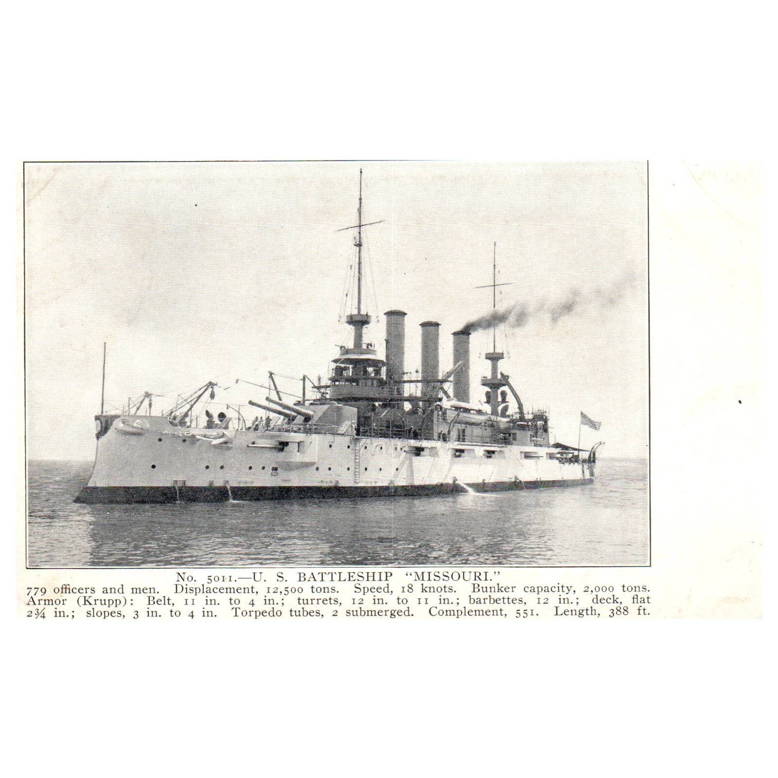 US Battleship Missouri 1911 - Original Postcard TJ8-5