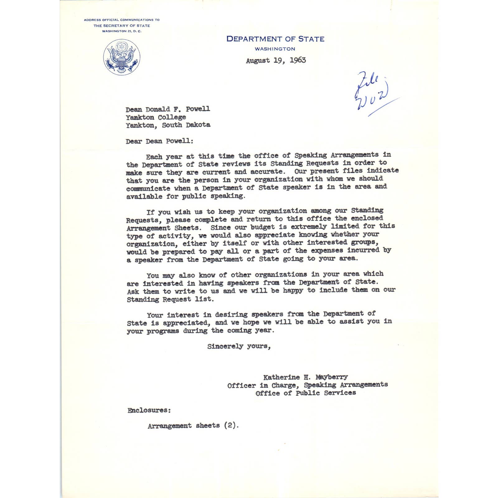 US Department of State Official Letterhead Memo Aug 19 1963 TK1-P11