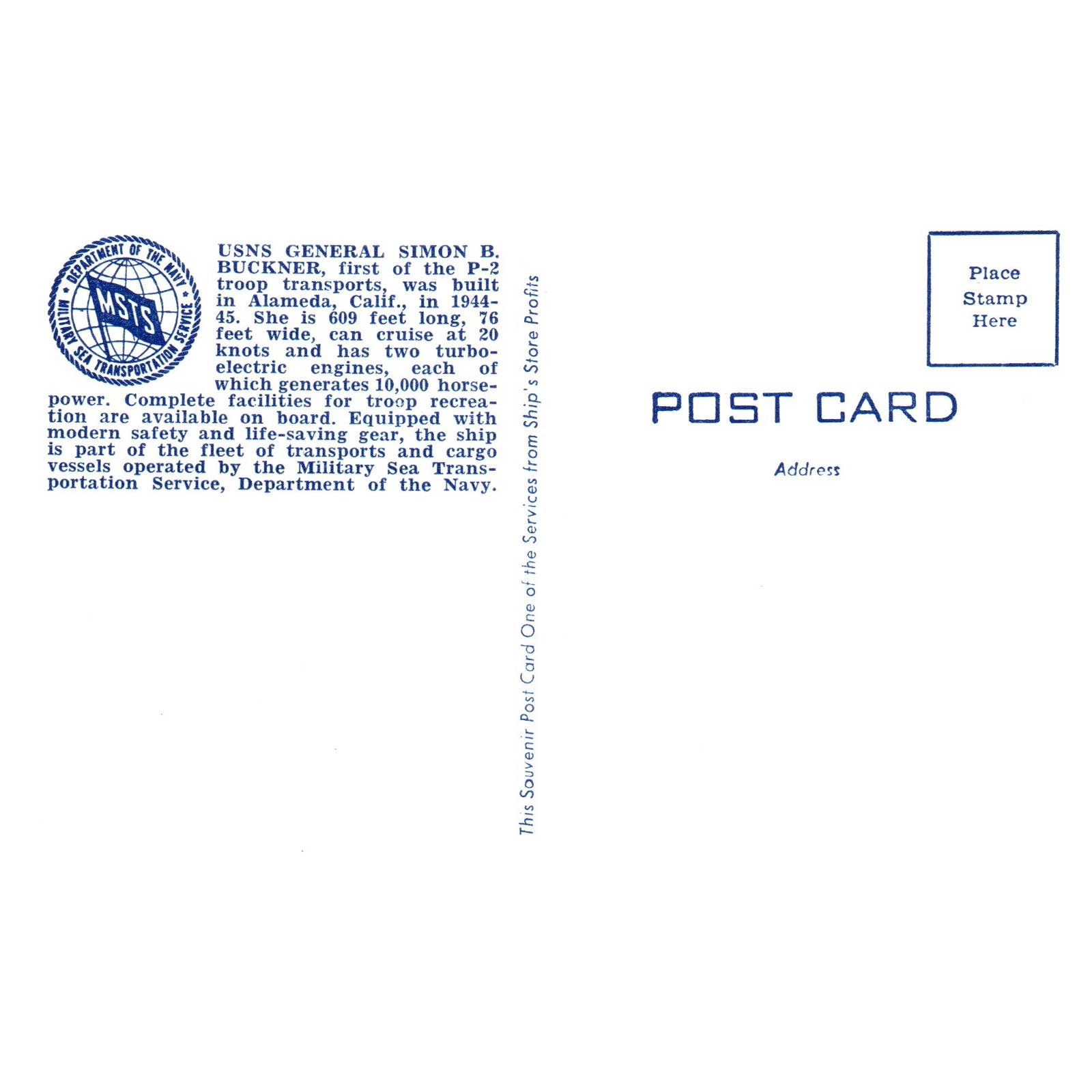US Naval Ship General Simon B. Buckner - Original Postcard TJ8-5