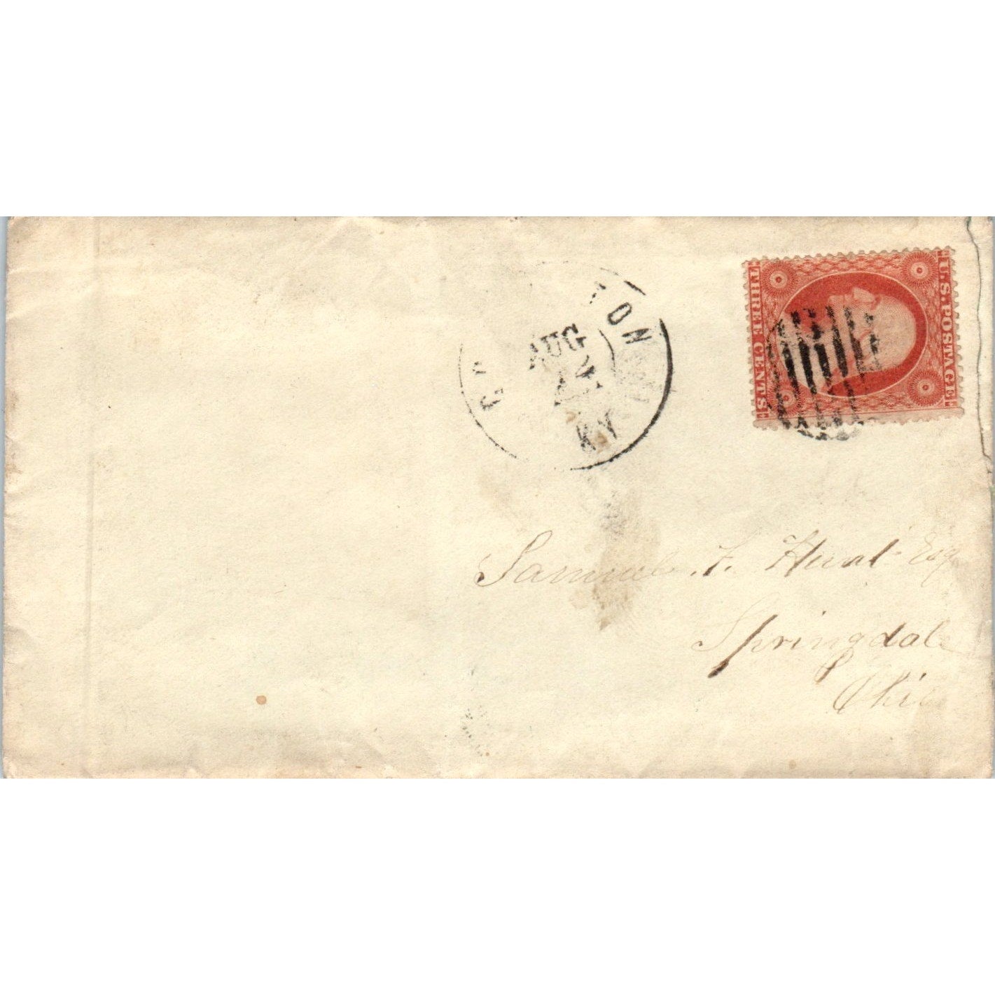 Used 3 Cent 1851 George Washington Stamp Bar Cancellation Postal Cover TH9-SX2
