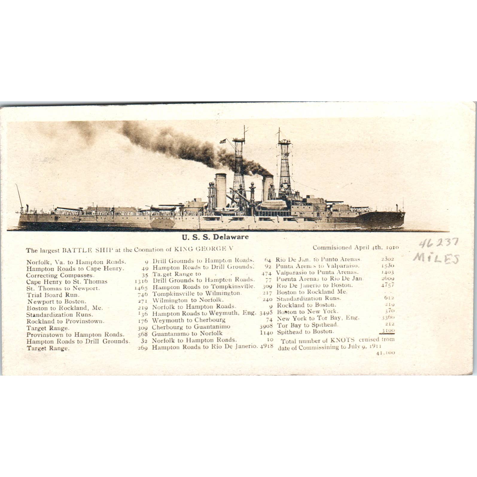 USS Delaware Steam Ship 1911 Original Postcard TK1-22