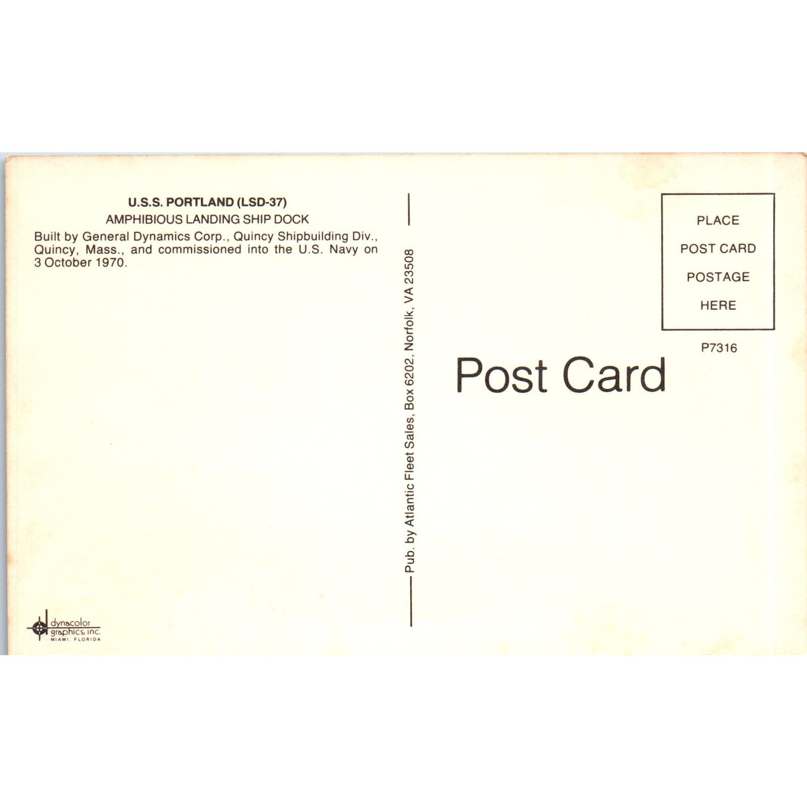 USS Portland LSD-37 Amphibious Landing Ship Dock Vintage Postcard PC17