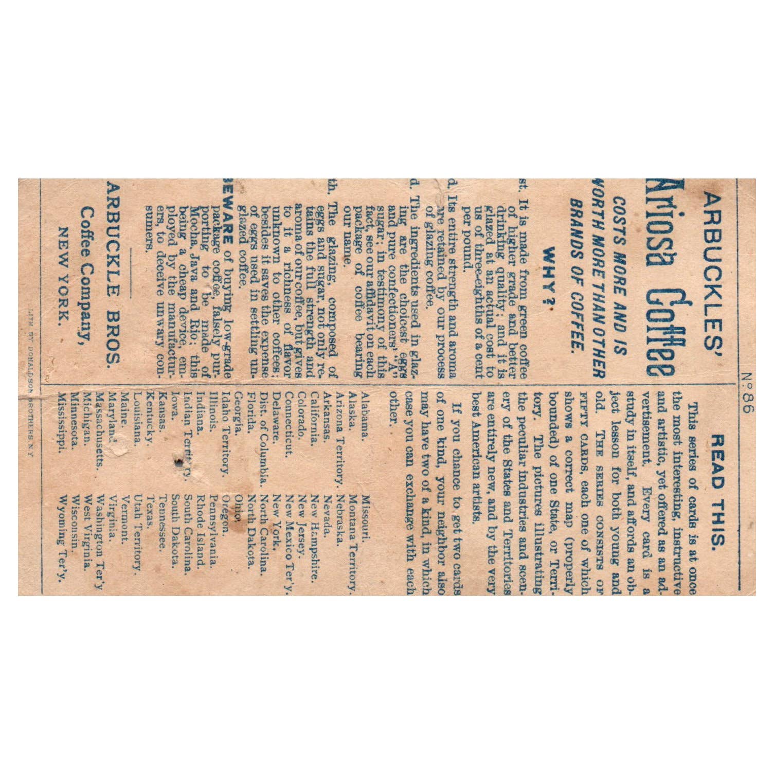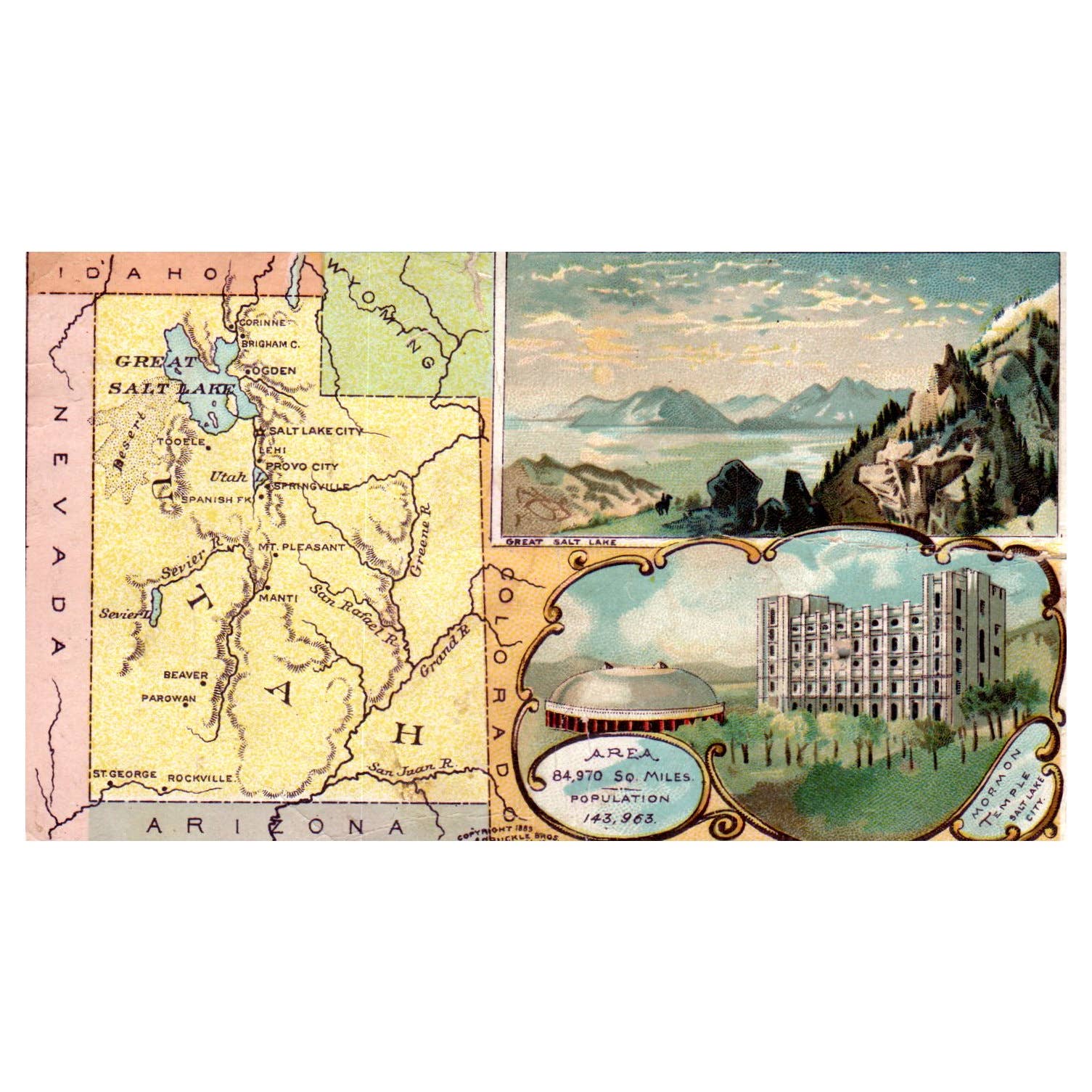 Utah Map - Arbuckle Bros Coffee - 1880s Victorian Trade Card TJ8-3
