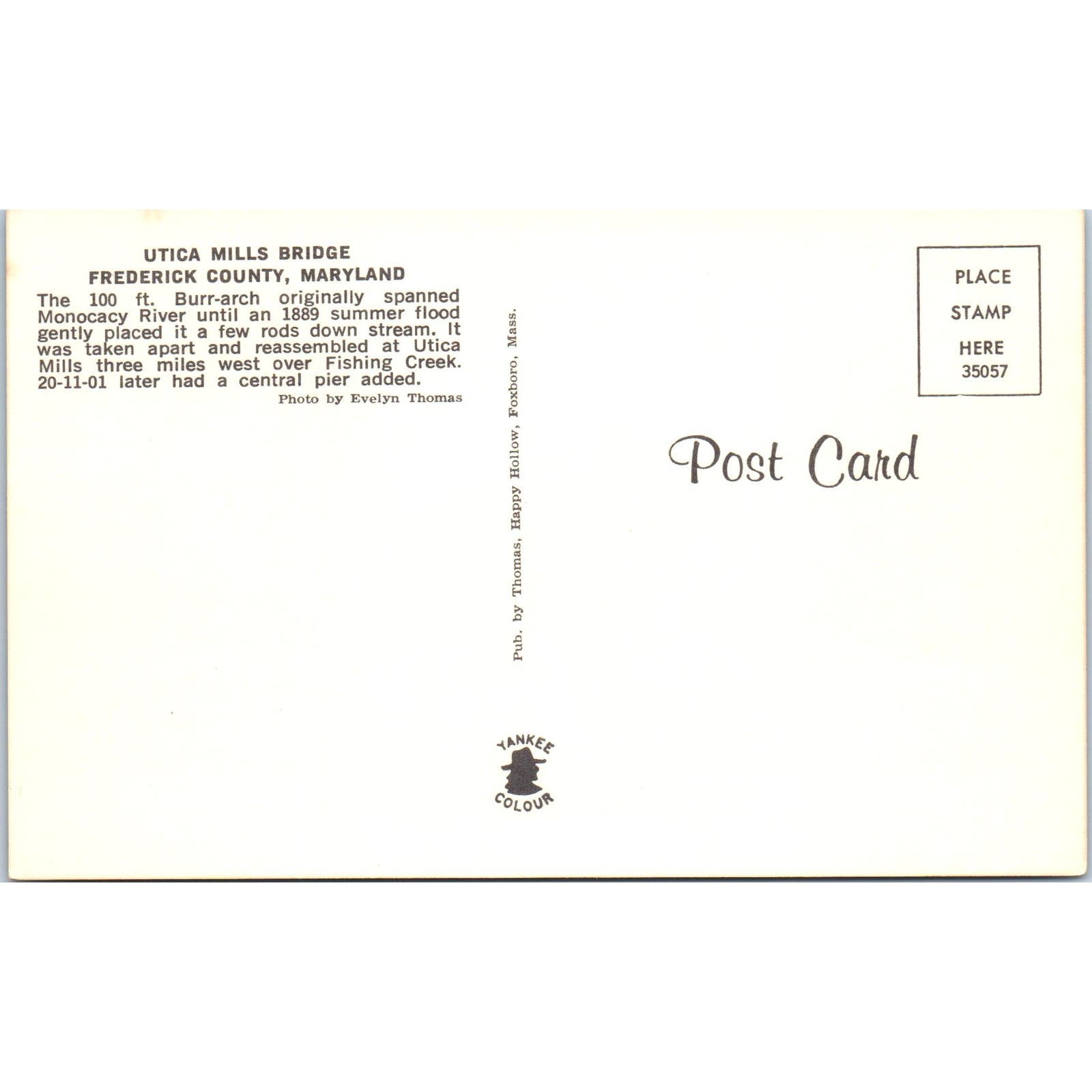 Utica Mills Bridge Frederick County MD Covered Bridge Postcard PB11
