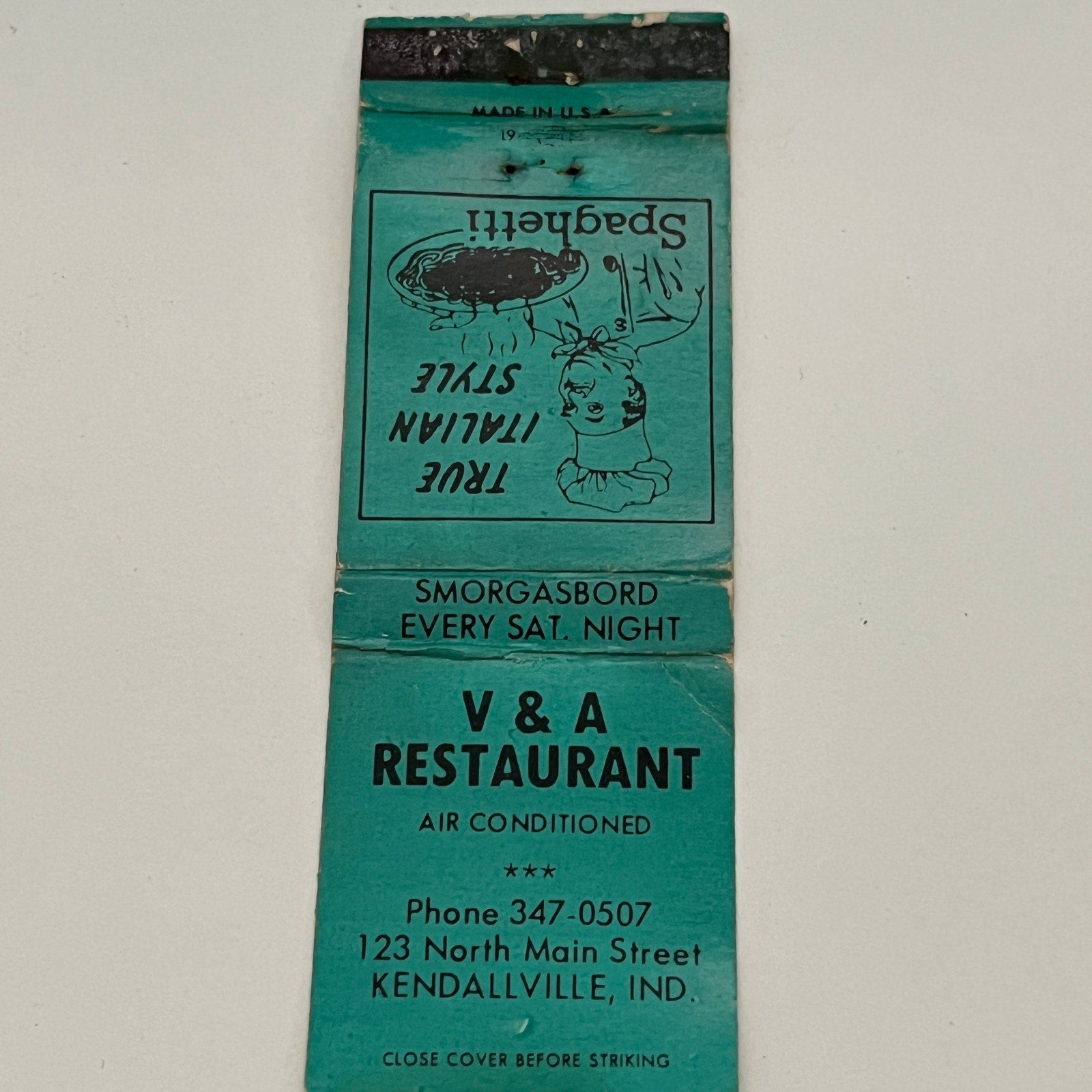 V&A Restaurant Kendallville Indiana Vintage Matchbook TB6-MB2-14