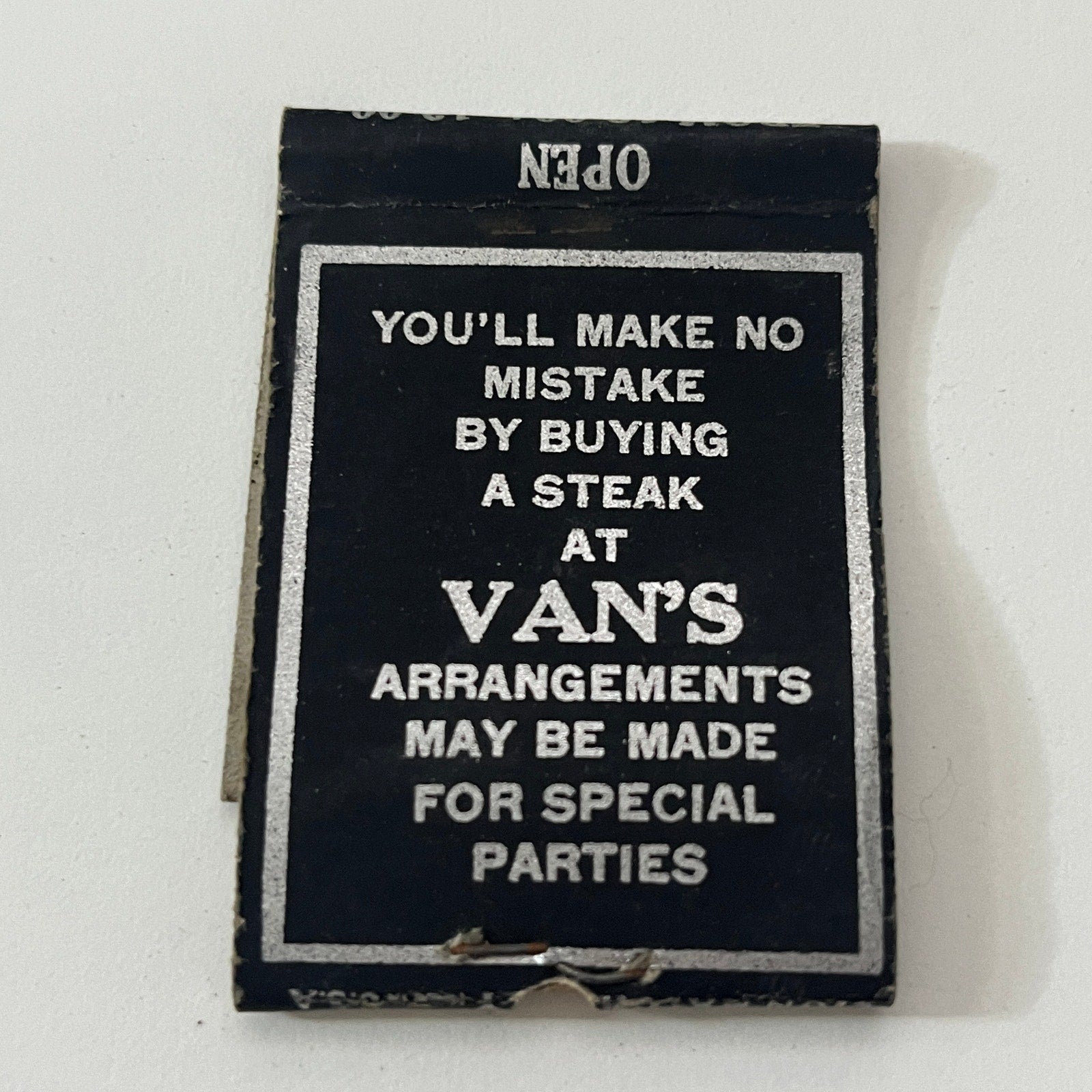 Van's Steaks and Chops On the Notch Amherst-Holyoke Road Vintage Matchbook Cover TB8-MB-8