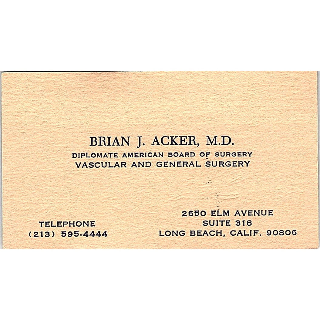Vascular and General Surgery, Brian J. Acker, CA Vintage Business Card Sf3-B7