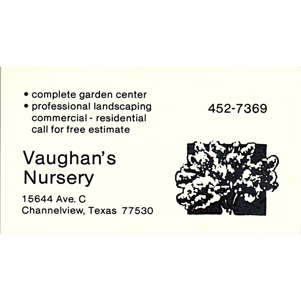 Vaughan's Nursery Channelview TX Vintage Business Card SB4-B11
