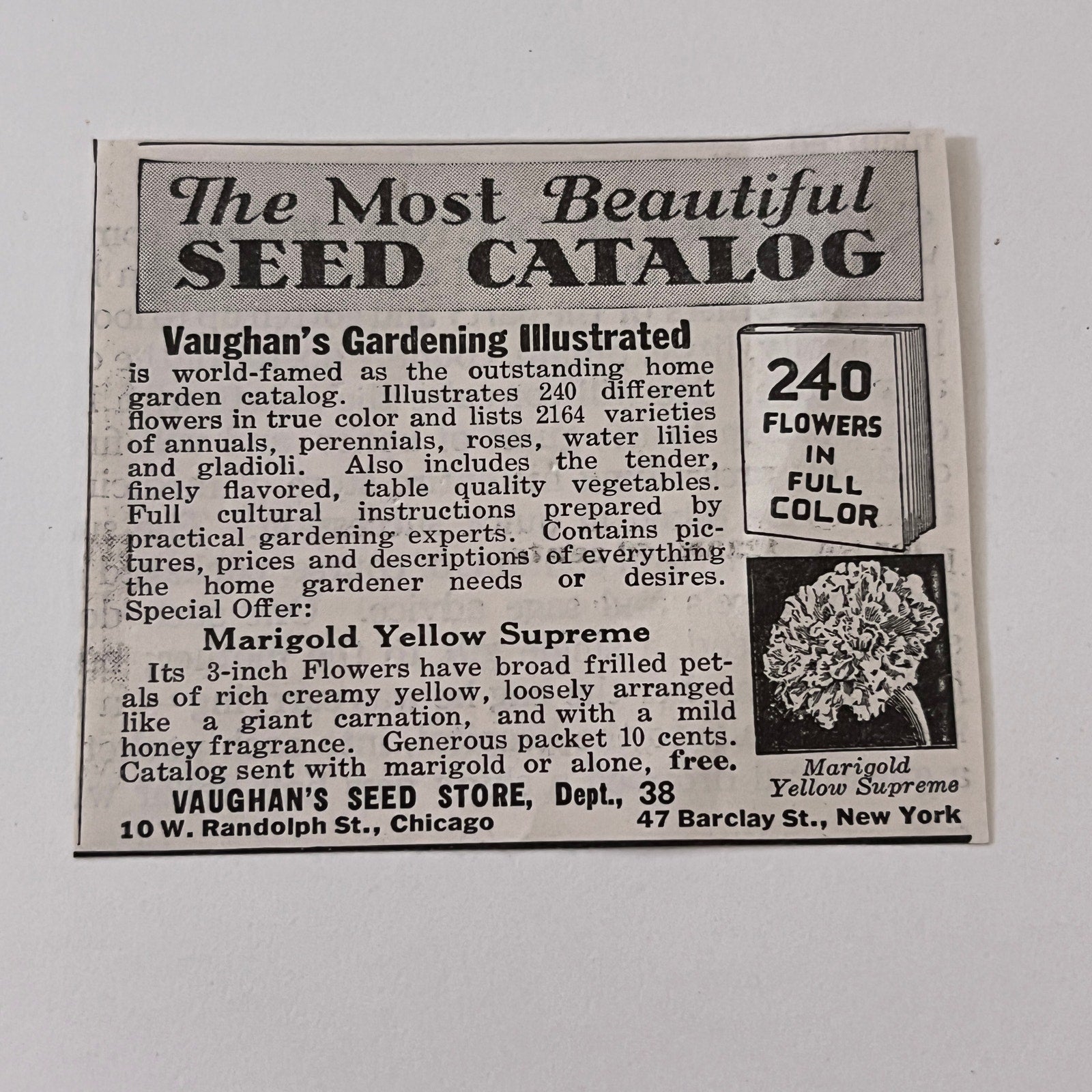 Vaughan's Seed Store Marigold Yellow Supreme Chicago IL 1936 Ad SAG4-M4