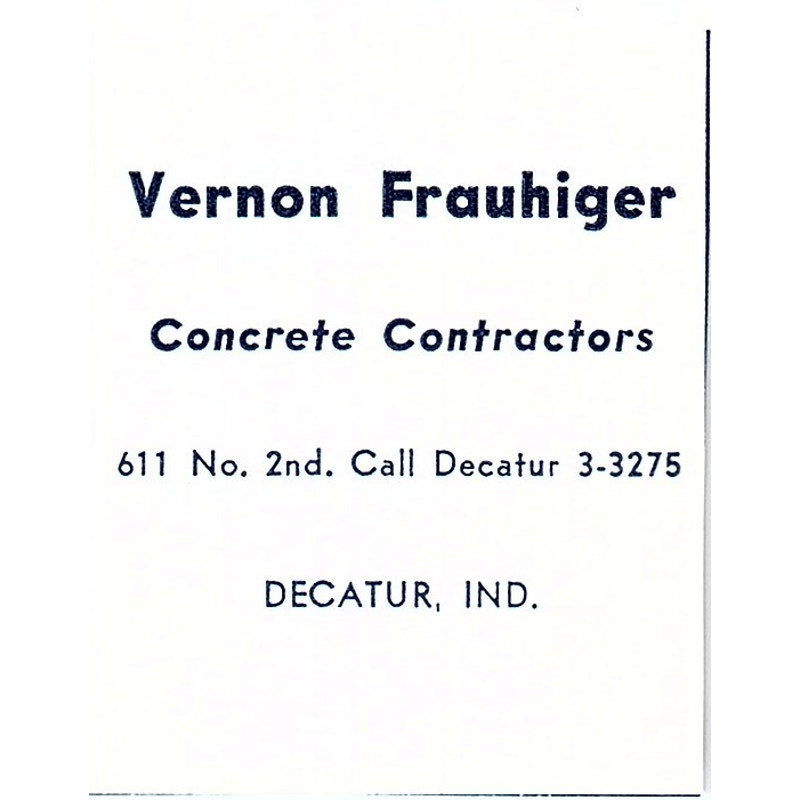 Vernon Frauhiger Concrete Contractors Decatur Indiana 1964 Ad AG1-S13