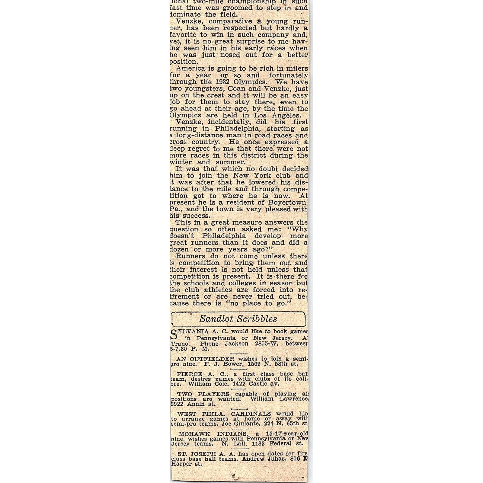 Measures Approx 2x5". Original piece taken from a Philadelphia Evening Bulletin Newspaper from March 1931. May have blemishes you would expect from something this age. See pics for condition.