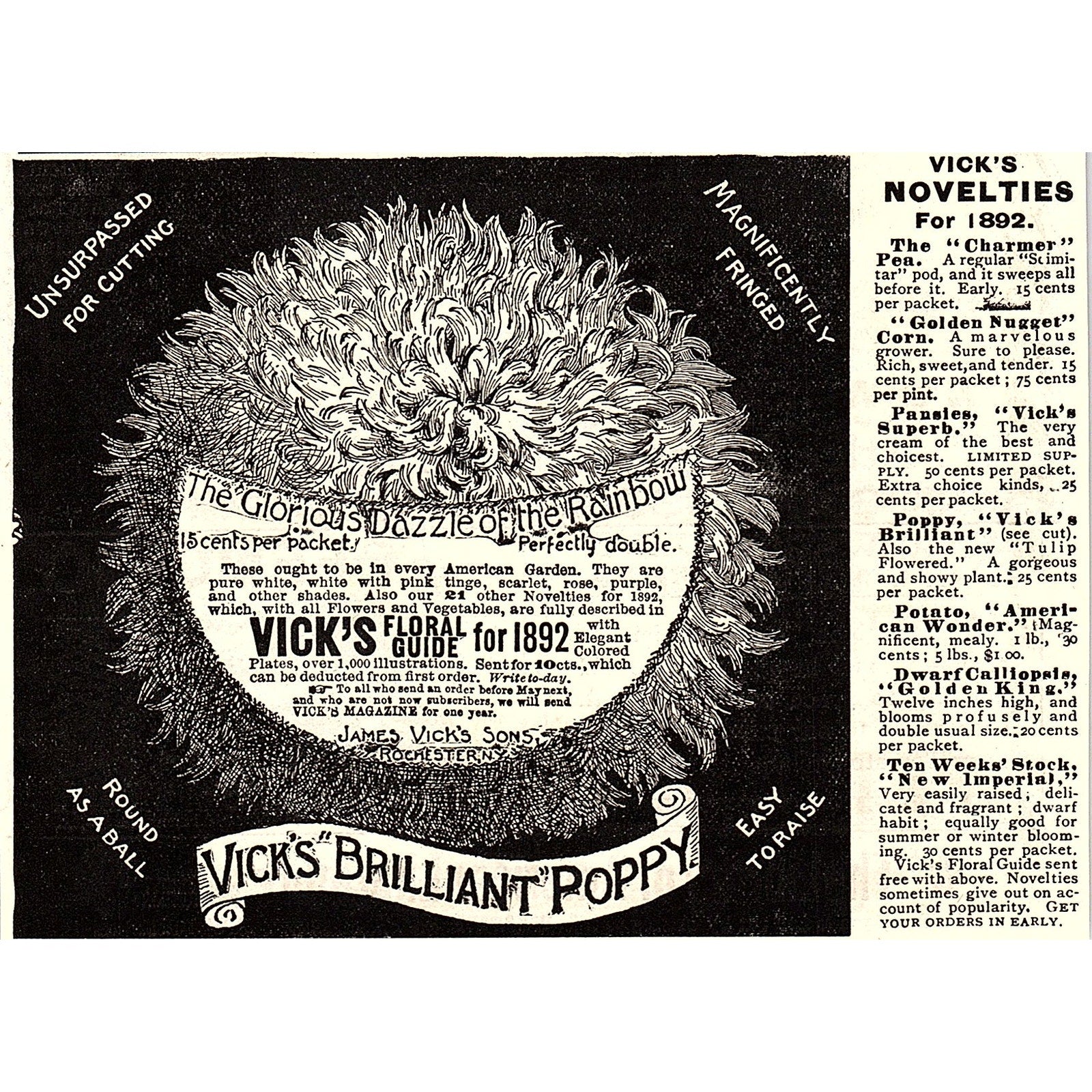 Vick's Brilliant Poppy James Vick's Sons Rochester NY 1892 Ad AG2-H5