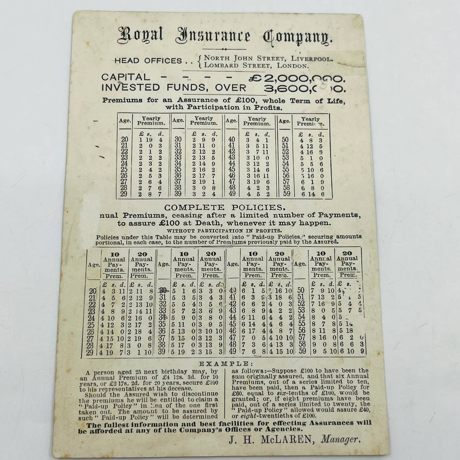 Victorian 1880s Trade Card Royal Insurance Company LONDON New Year’s Wishes AA3