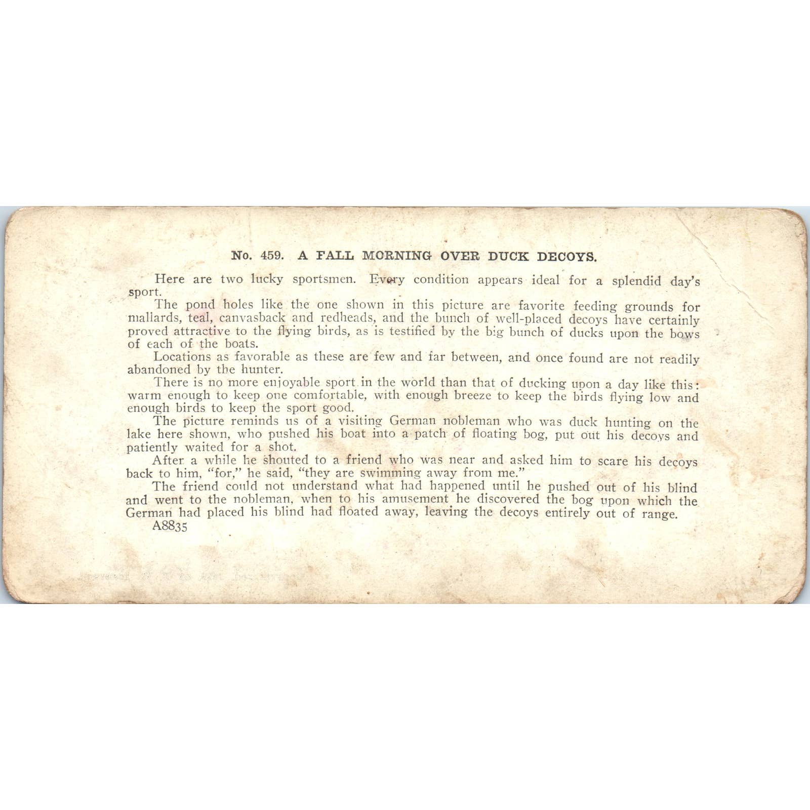 Victorian Duck Hunting "Morning Over Duck Decoys" - Antique Stereoview Card TJ1-C1