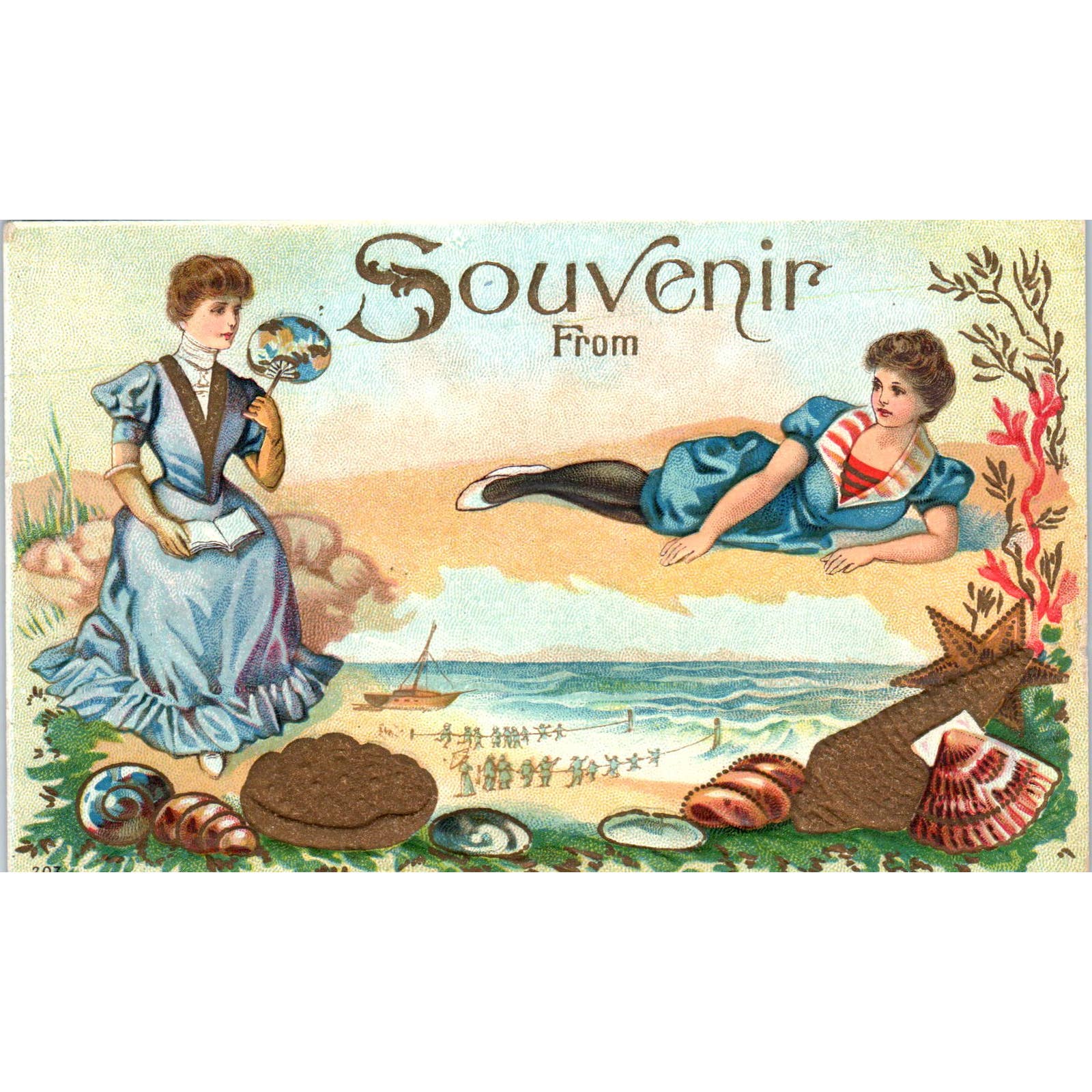 Victorian Embossed Beach Romance Scene c1910 Original Souvenir Postcard TK1-21-3