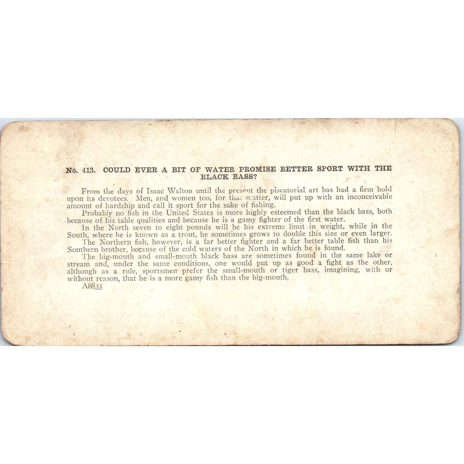 Victorian Fishing "Sport With the Black Bass"- Antique Stereoview Card TJ1-C1