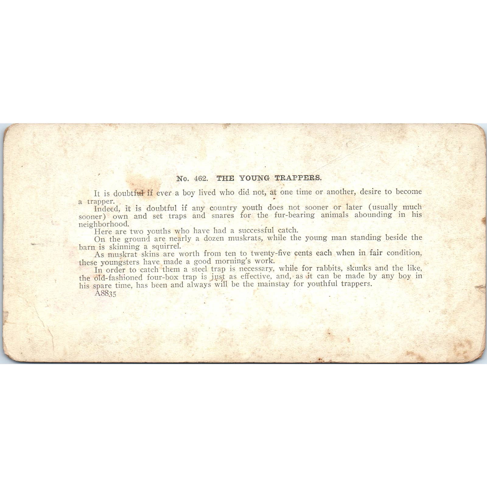 Victorian Fur Trappers "The Young Trappers" - Antique Stereoview Card TJ1-C1
