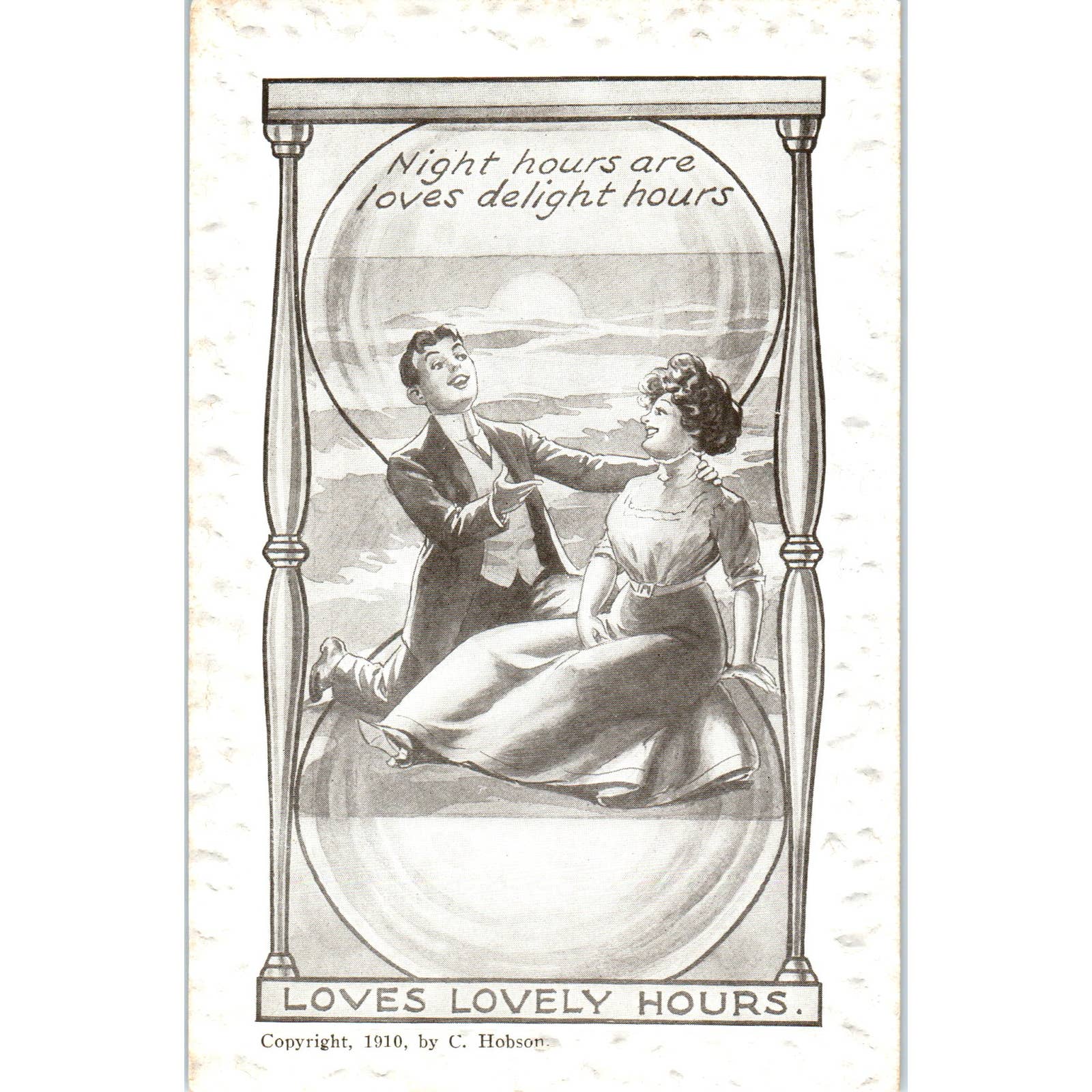 Victorian Romance Night Hours Hourglass Illustration 1910 Original Postcard TK1-21