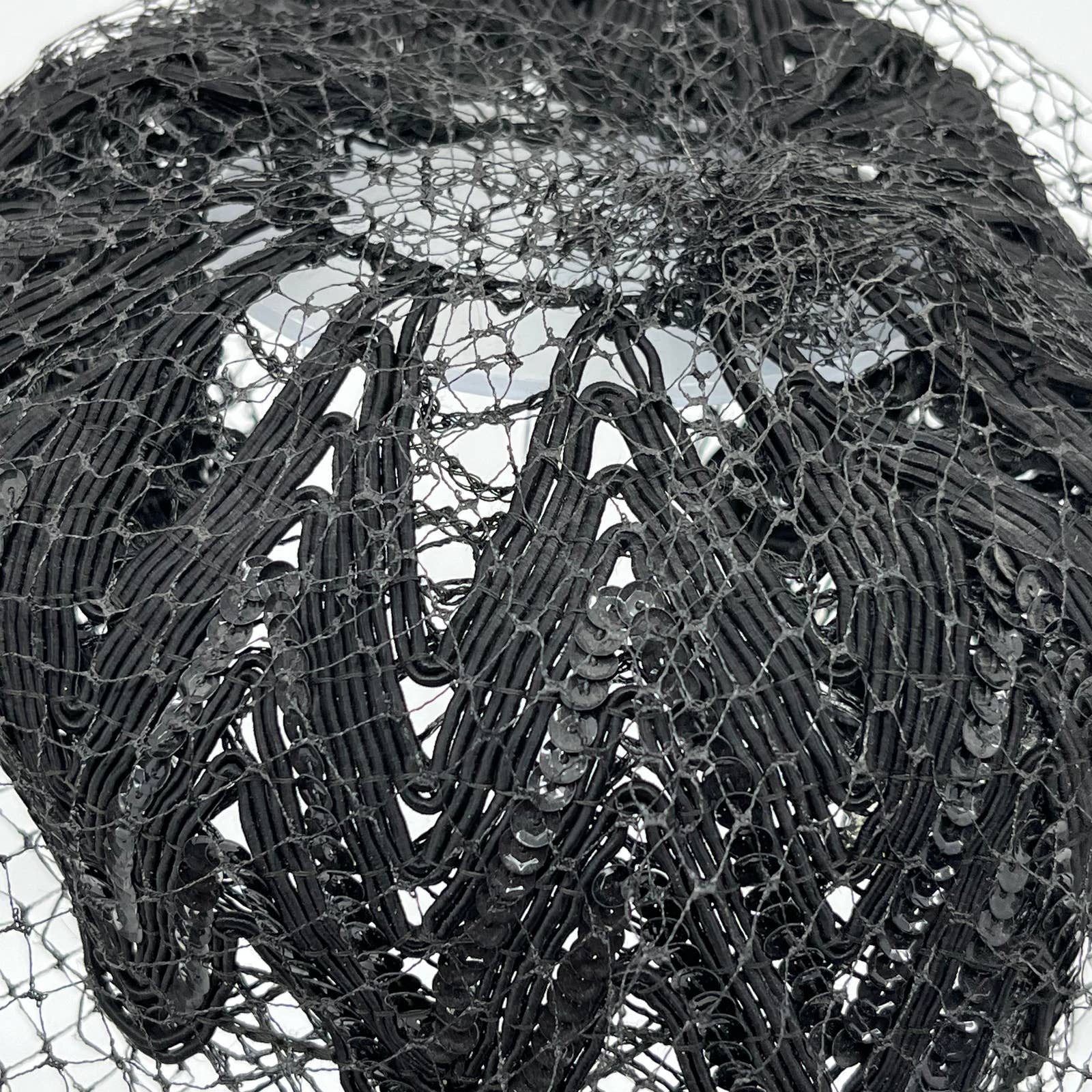 Vintage 1940s Black Clip In Pillbox Hat with Veil and Sequins HB1