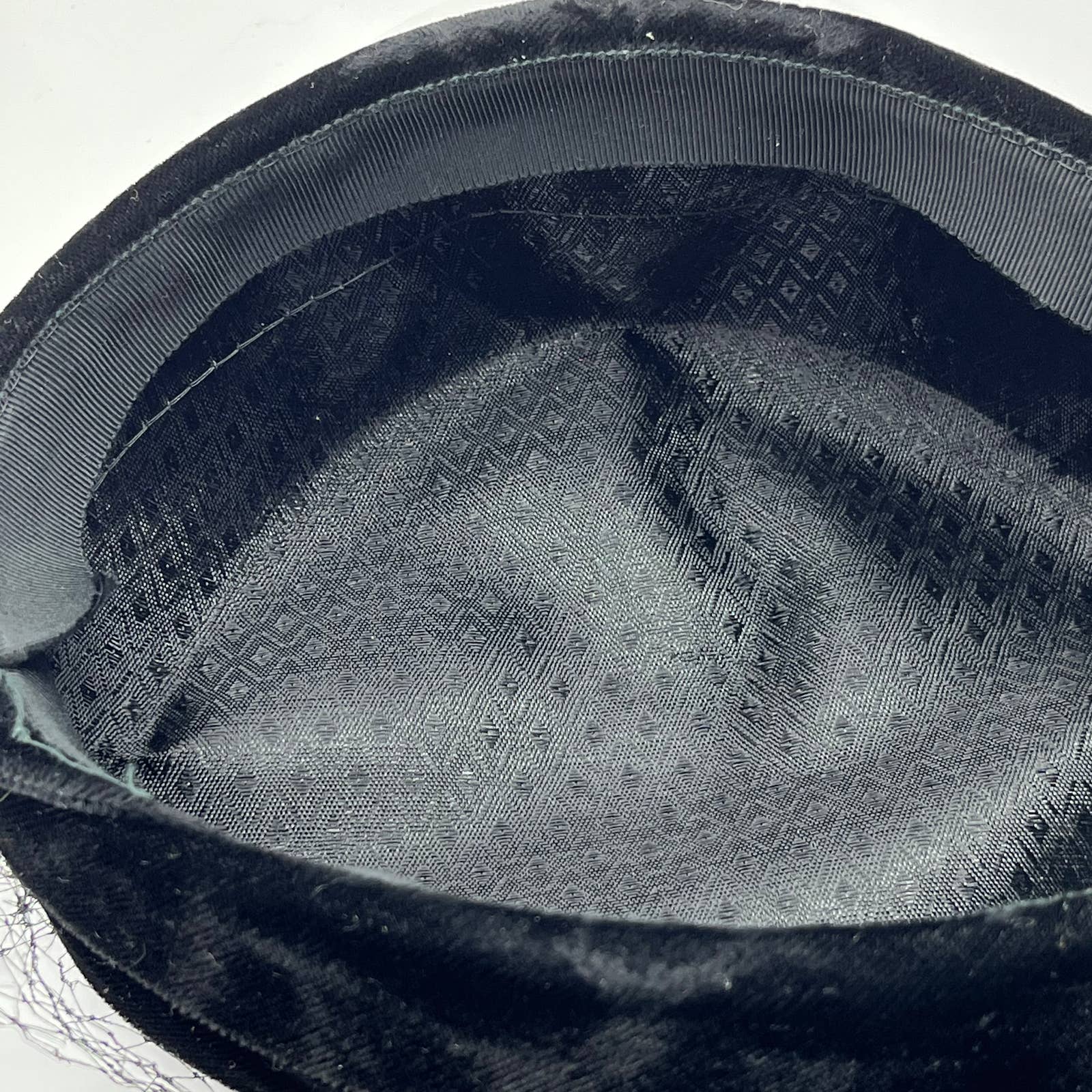Vintage 1940s Black Velvet Pillbox Hat with Netting HB1