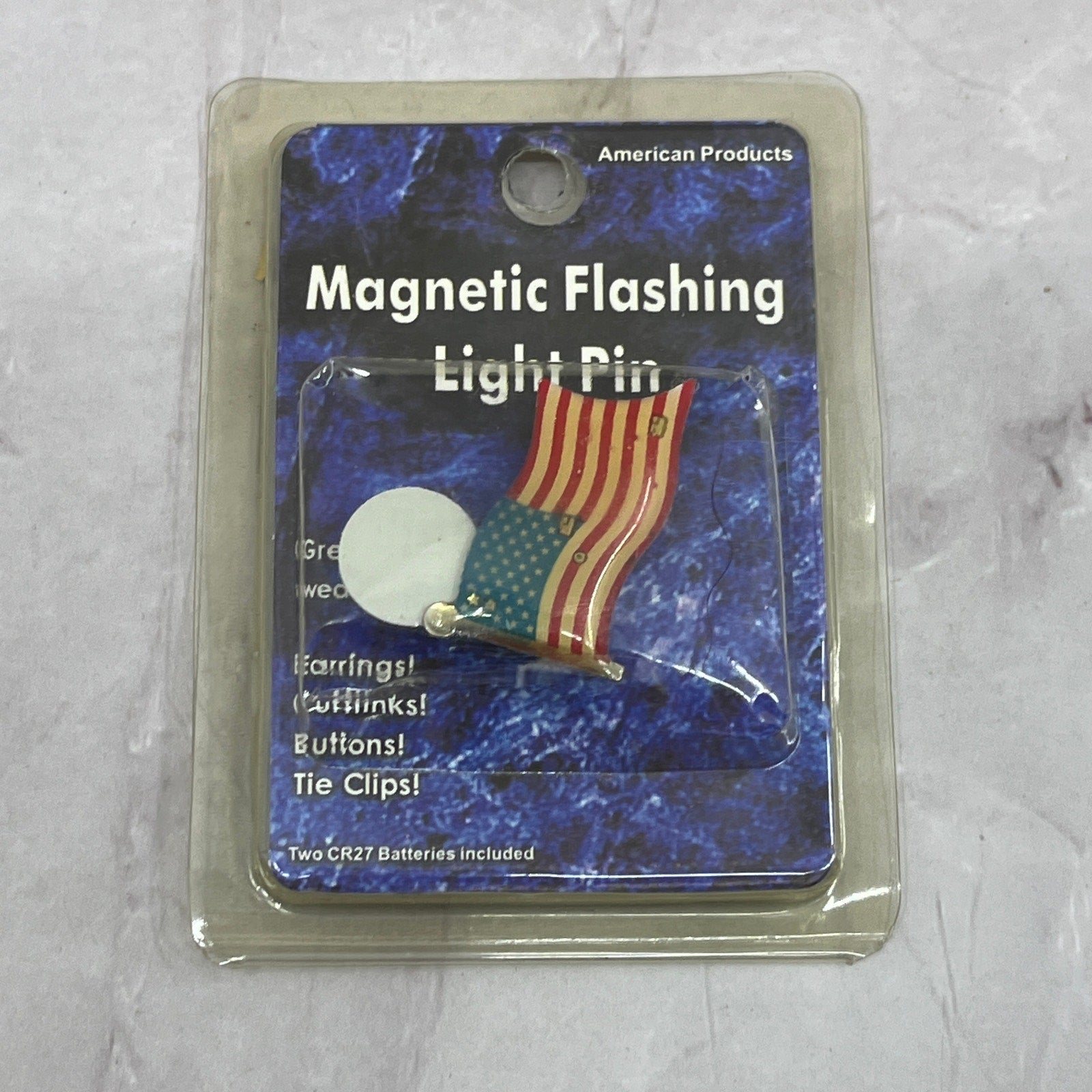 Vintage American Flag Magnetic Flashing Light Pin NOS Sealed in Package SE2