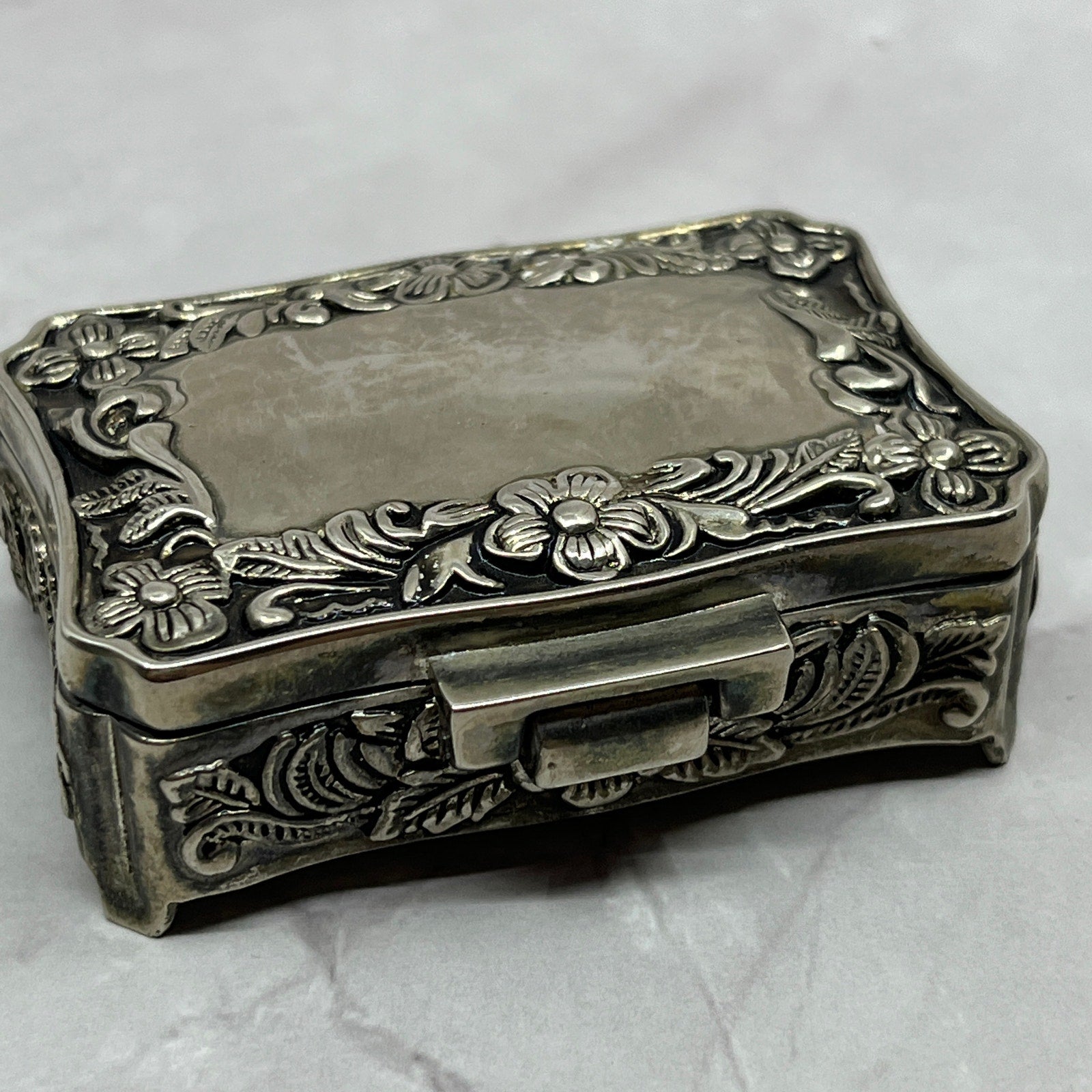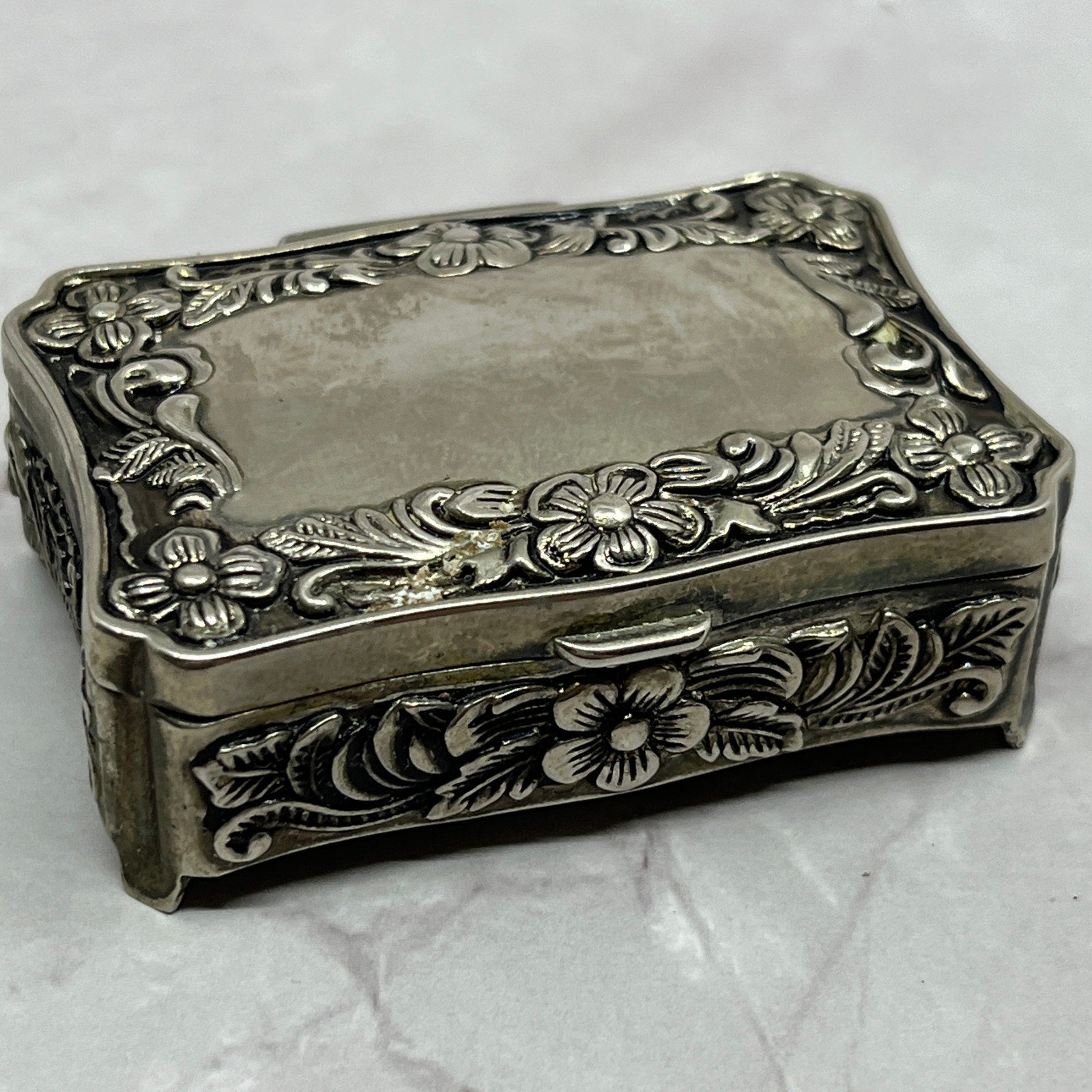 Vintage Art Nouveau Metal Trinket Jewelry Box Black Velvet SC1