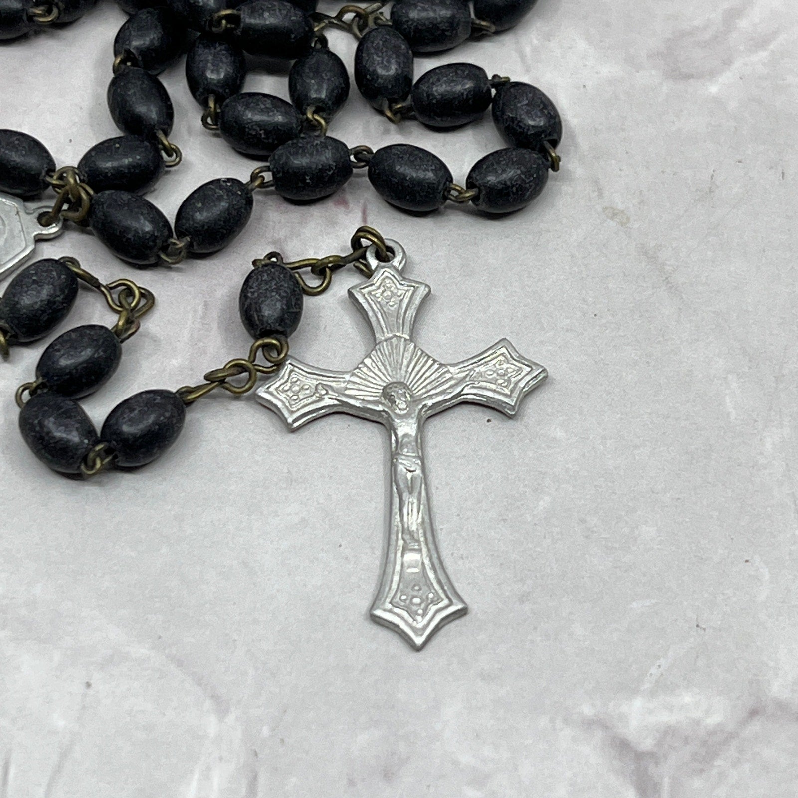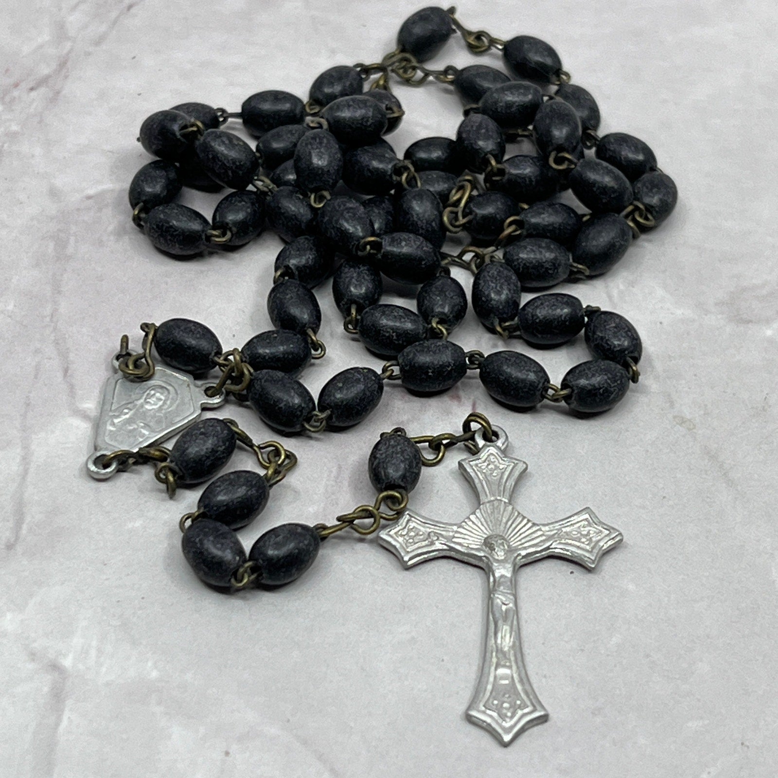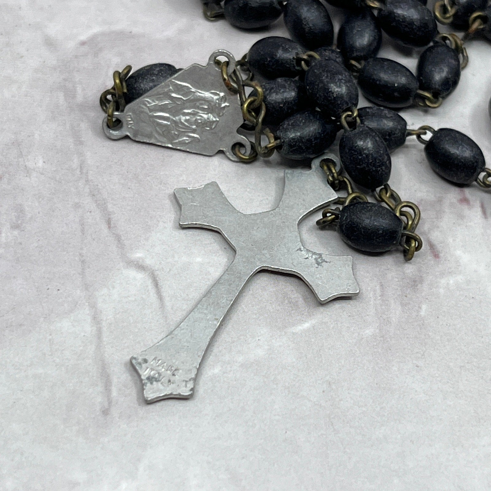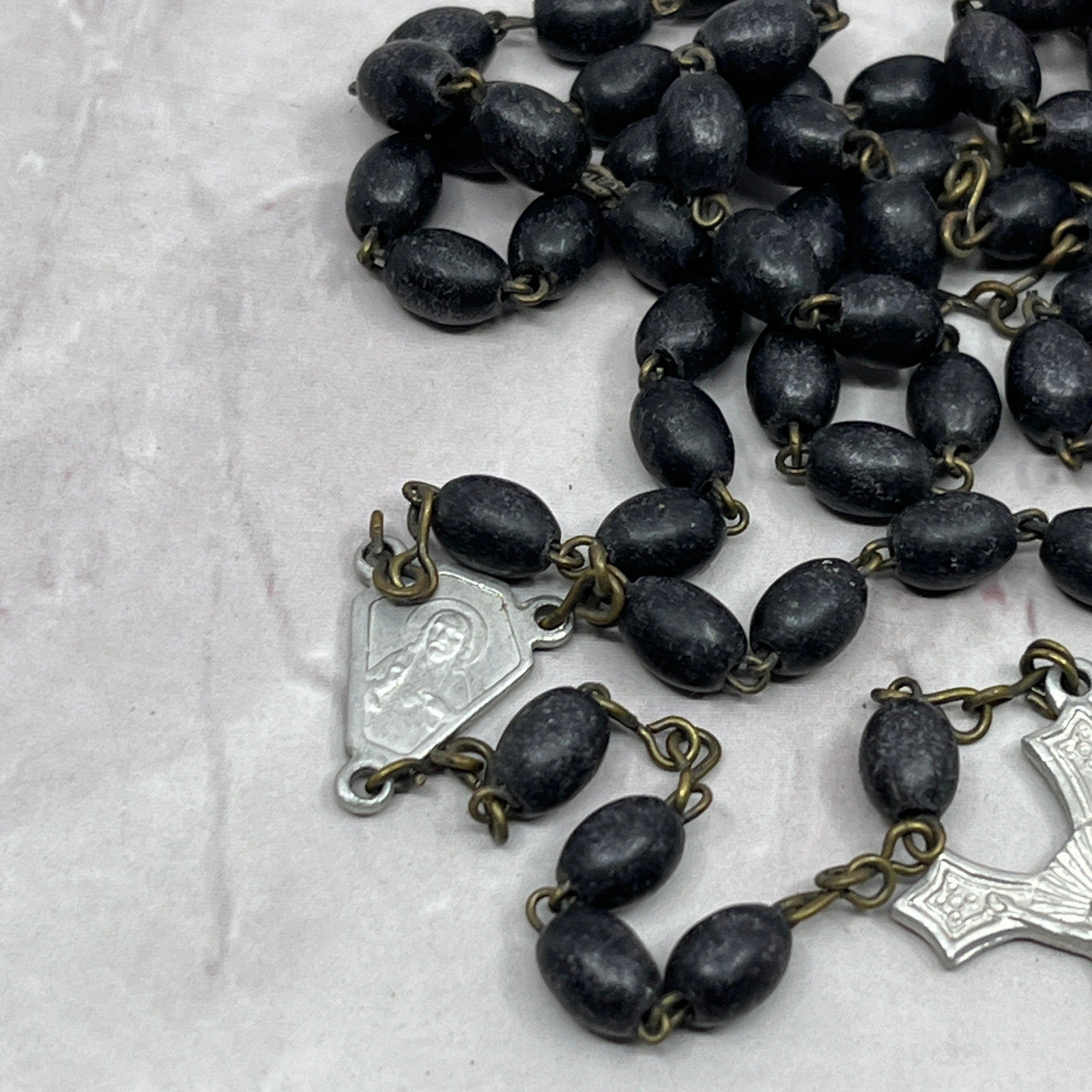 Vintage Black Wood Catholic Rosary Scapular Italy Marian Prayer Beads SE2-2