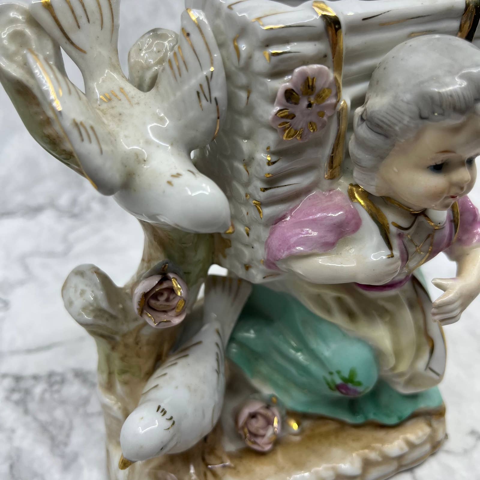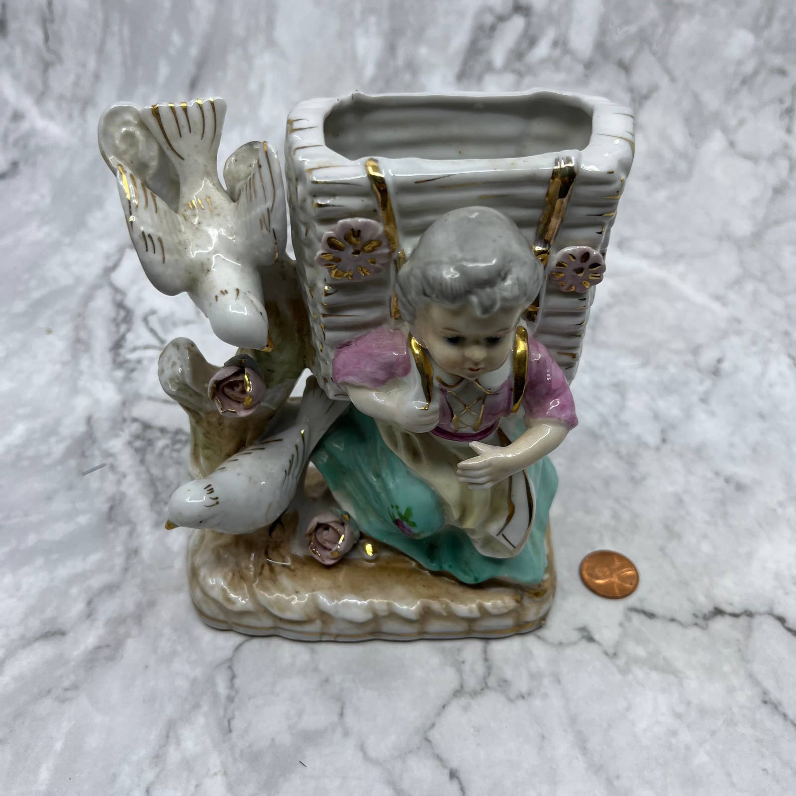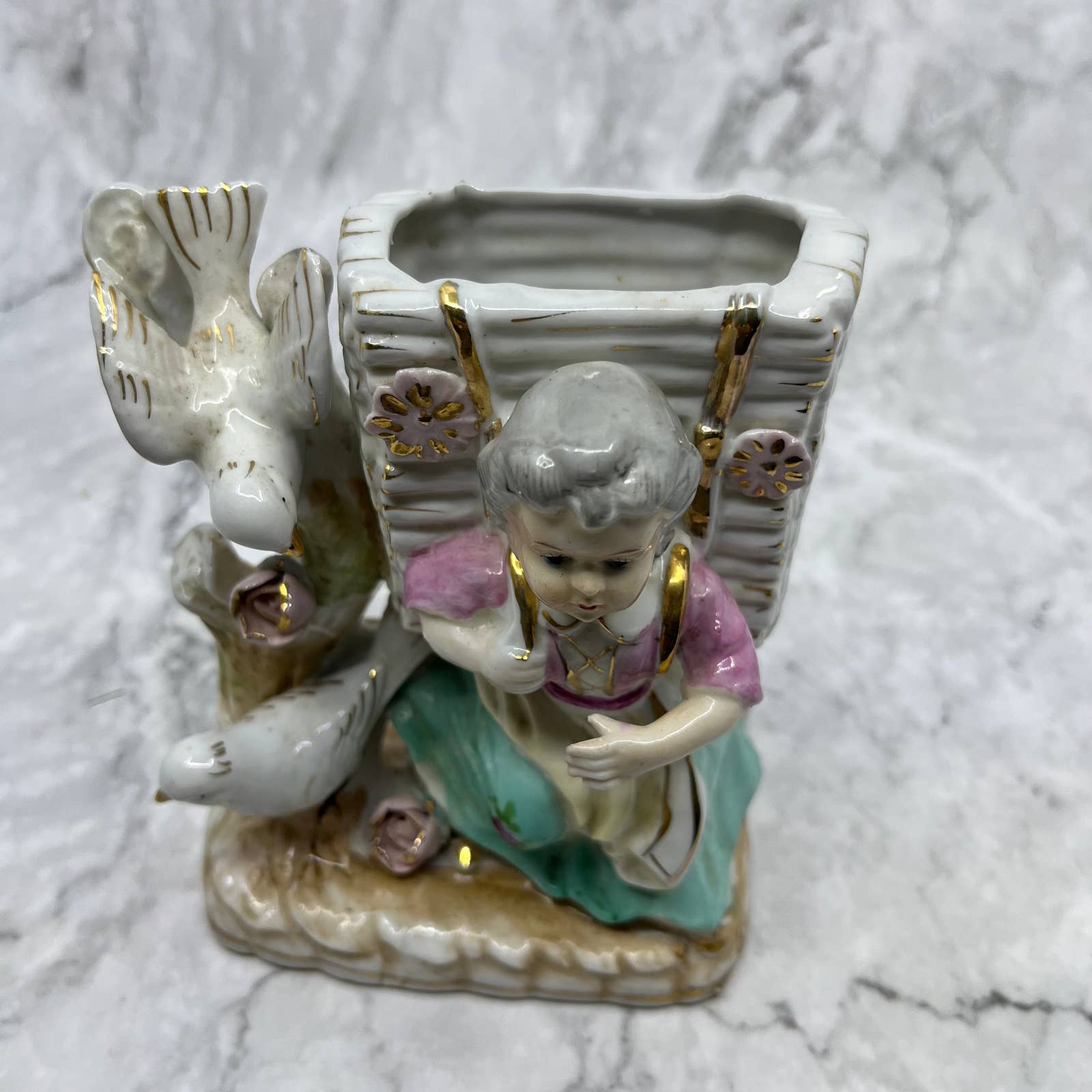 Vintage Bone China Planter Vase Colonial/Victorian Lady Gold Accents 4.5x5.5 TA1