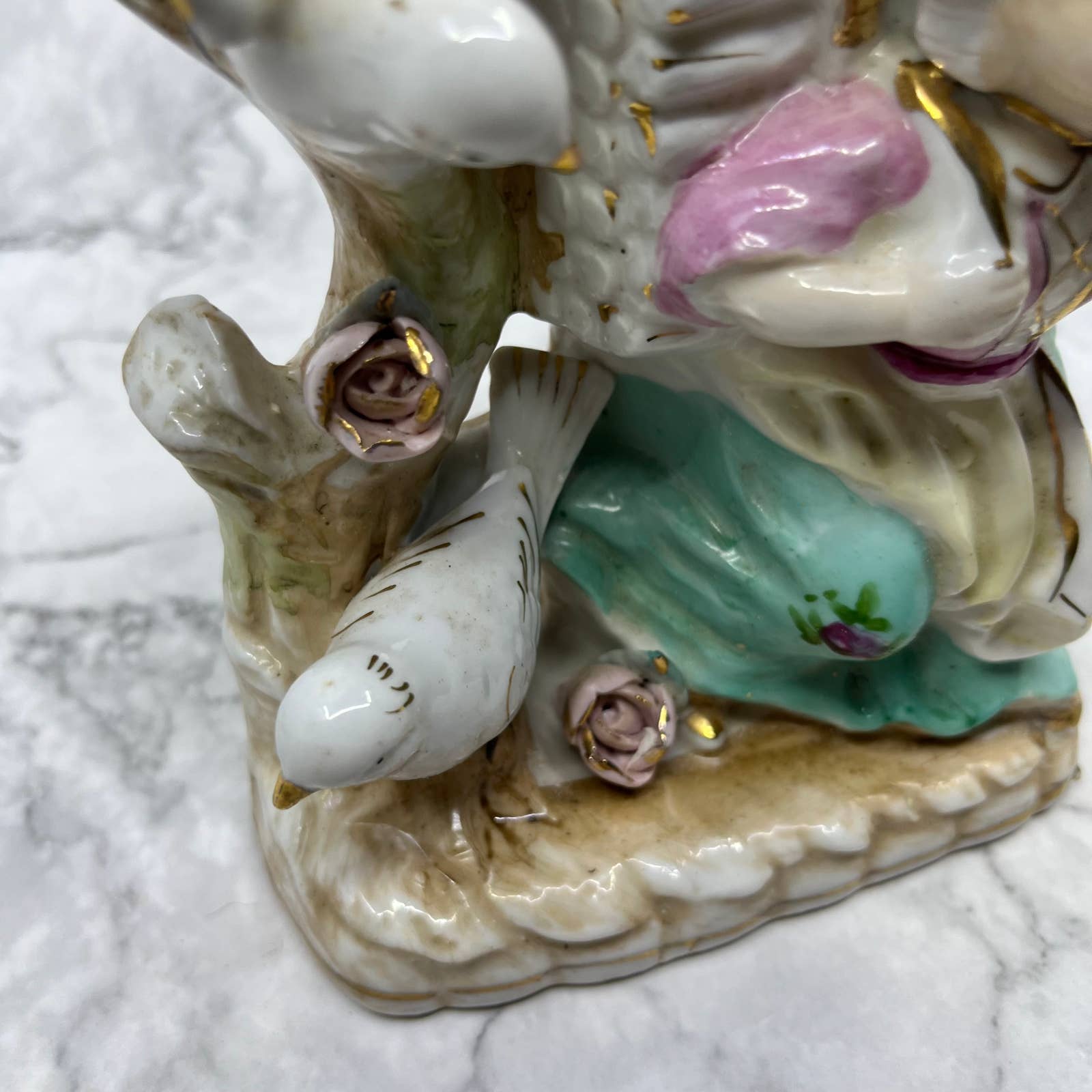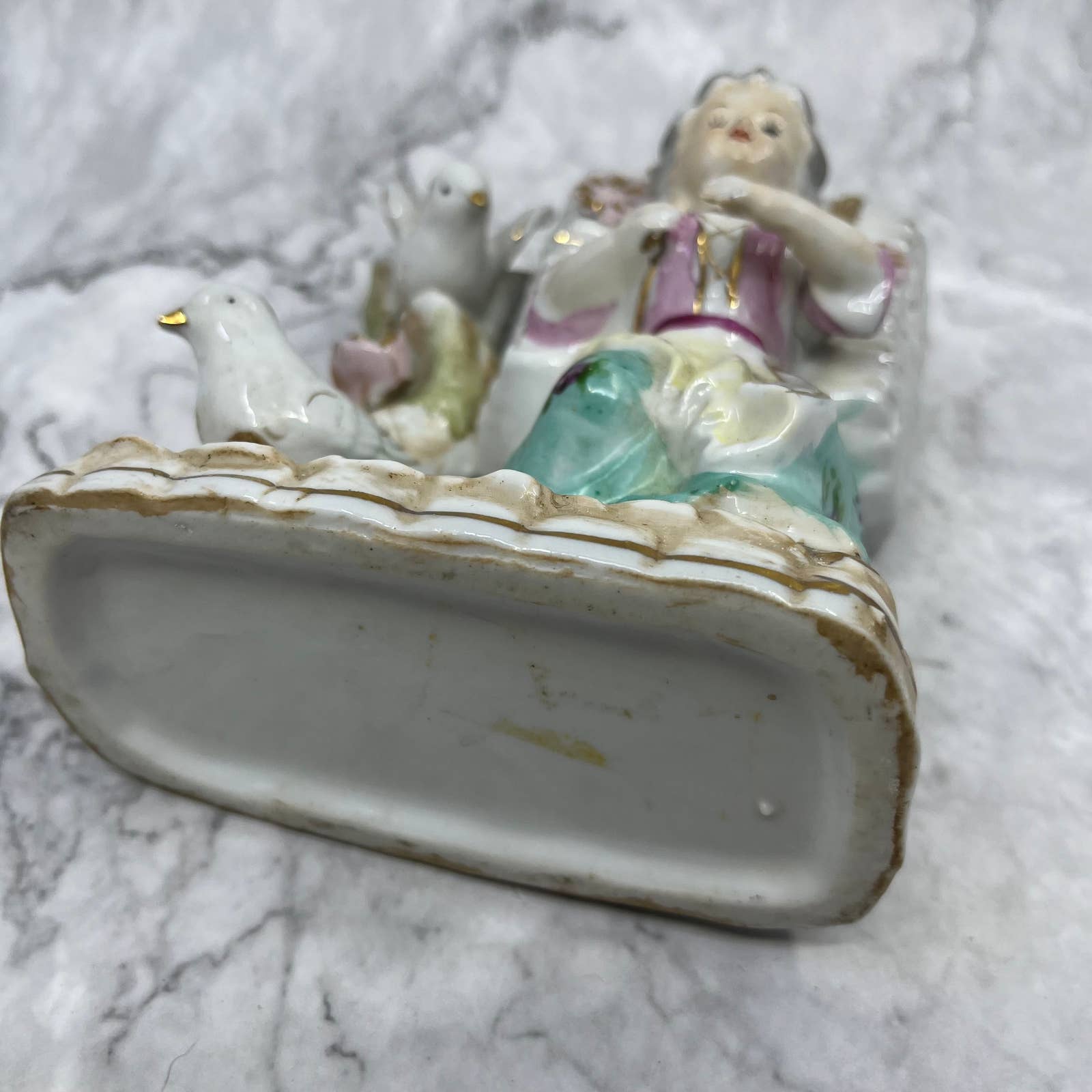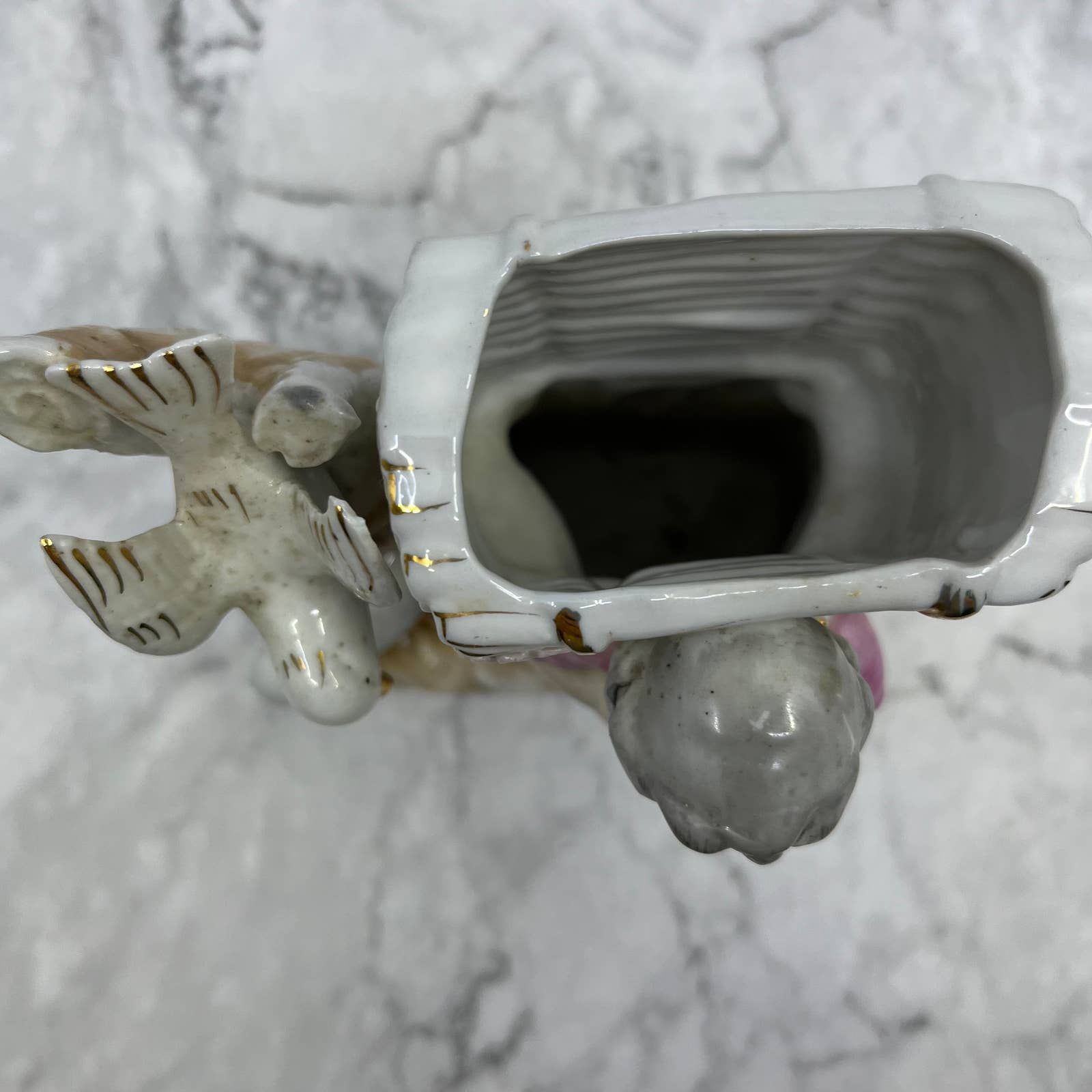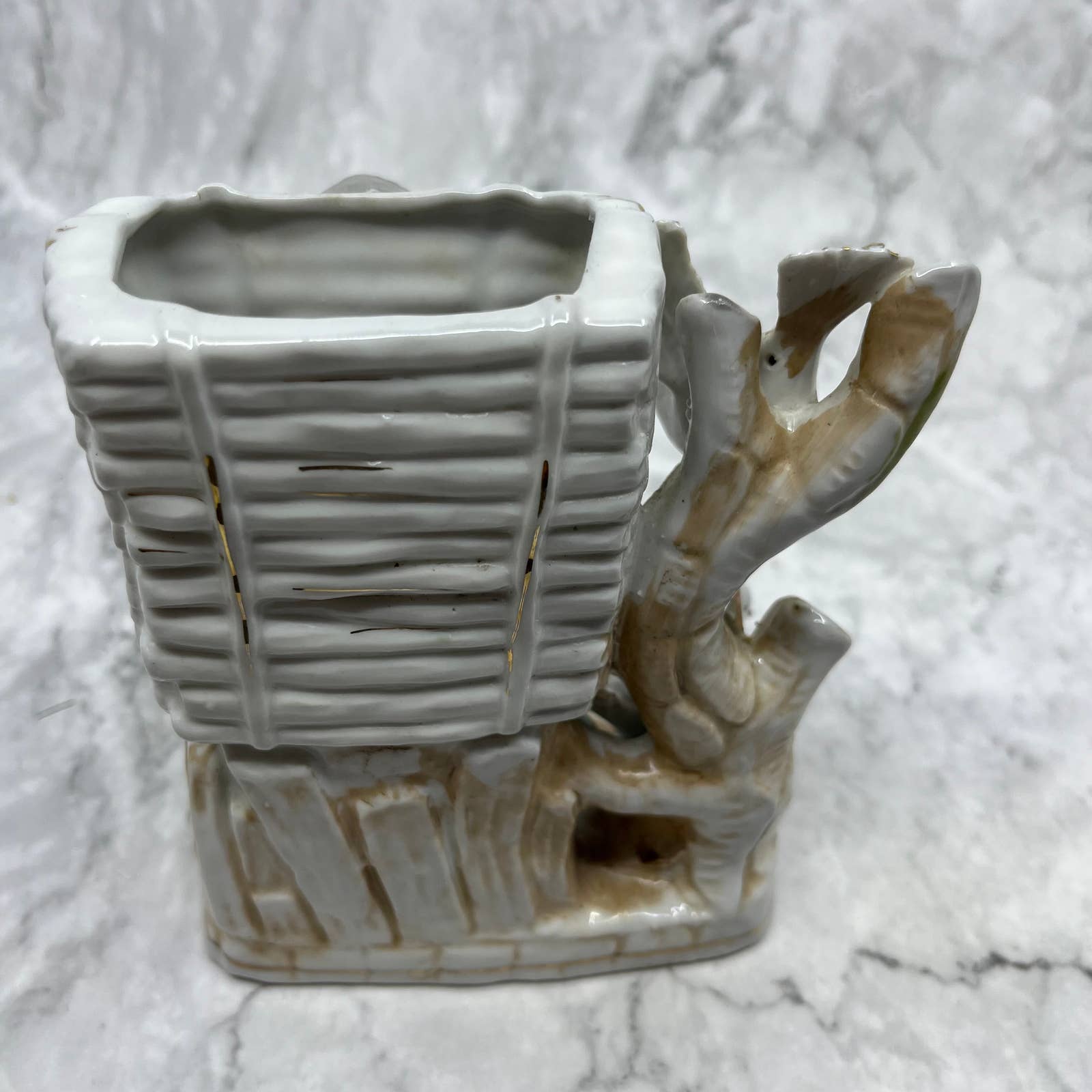 Vintage Bone China Planter Vase Colonial/Victorian Lady Gold Accents 4.5x5.5 TA1
