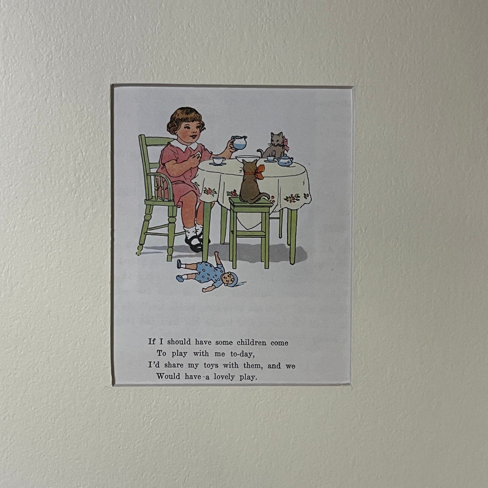 Vintage Children's Book Tea Party With Cats Matted Art Print 9x12 V4