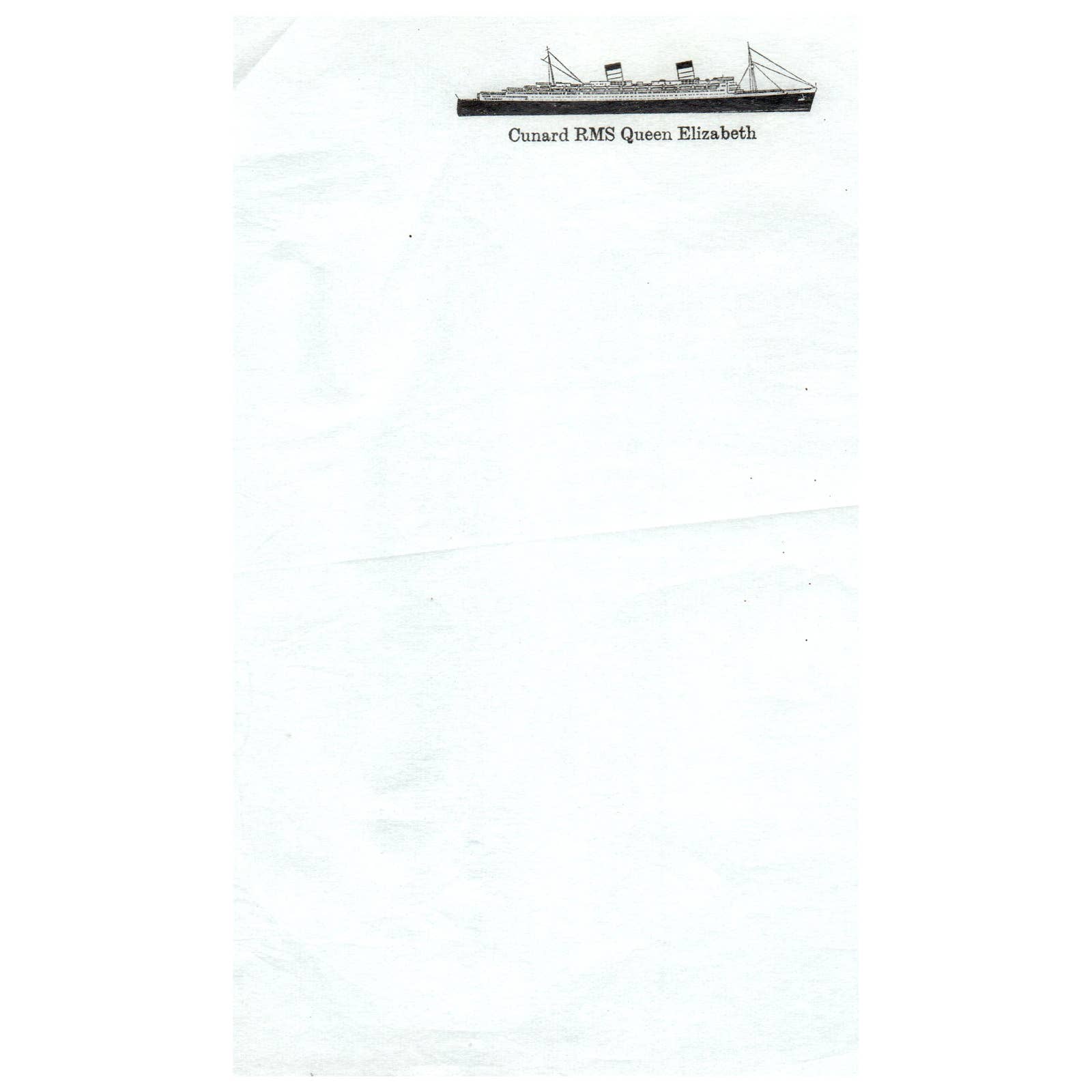 Vintage Cunard RMS Queen Elizabeth Stationary Letterhead 1 Sheet AD1