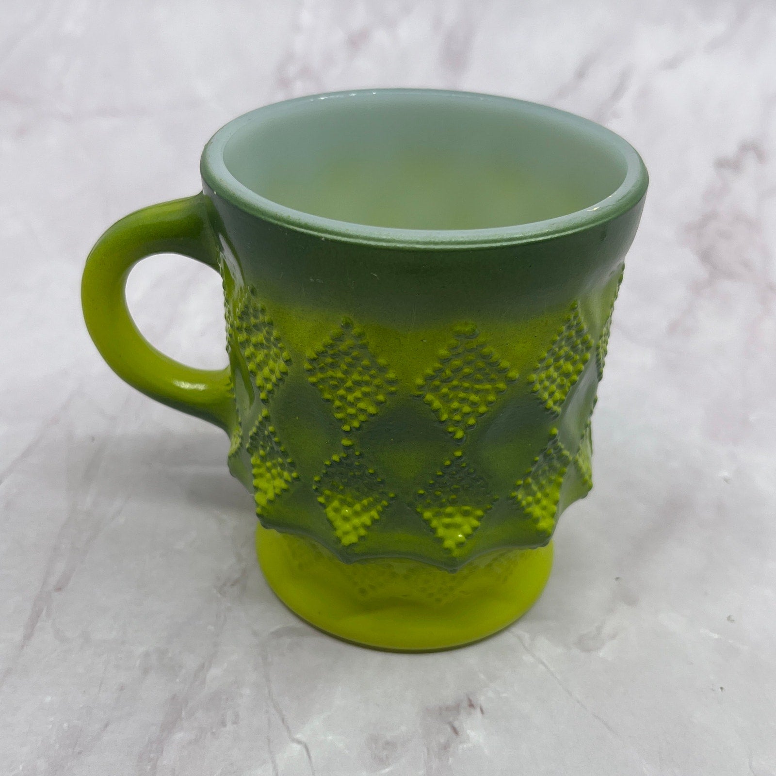 Vintage Fire King Ombre Green Kimberly Diamond Milk Glass Mug Cup TC5