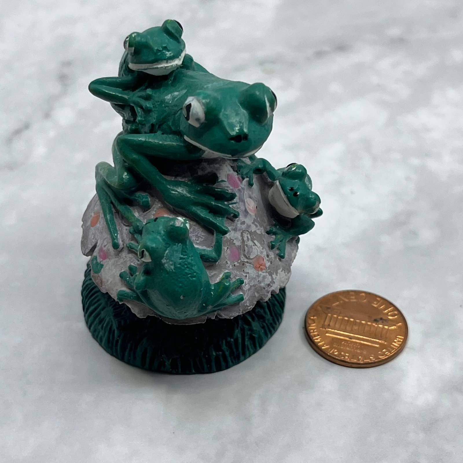 Vintage Hand Painted Cast Resin Frogs on Toadstool Mushroom Figurine 3” TE2