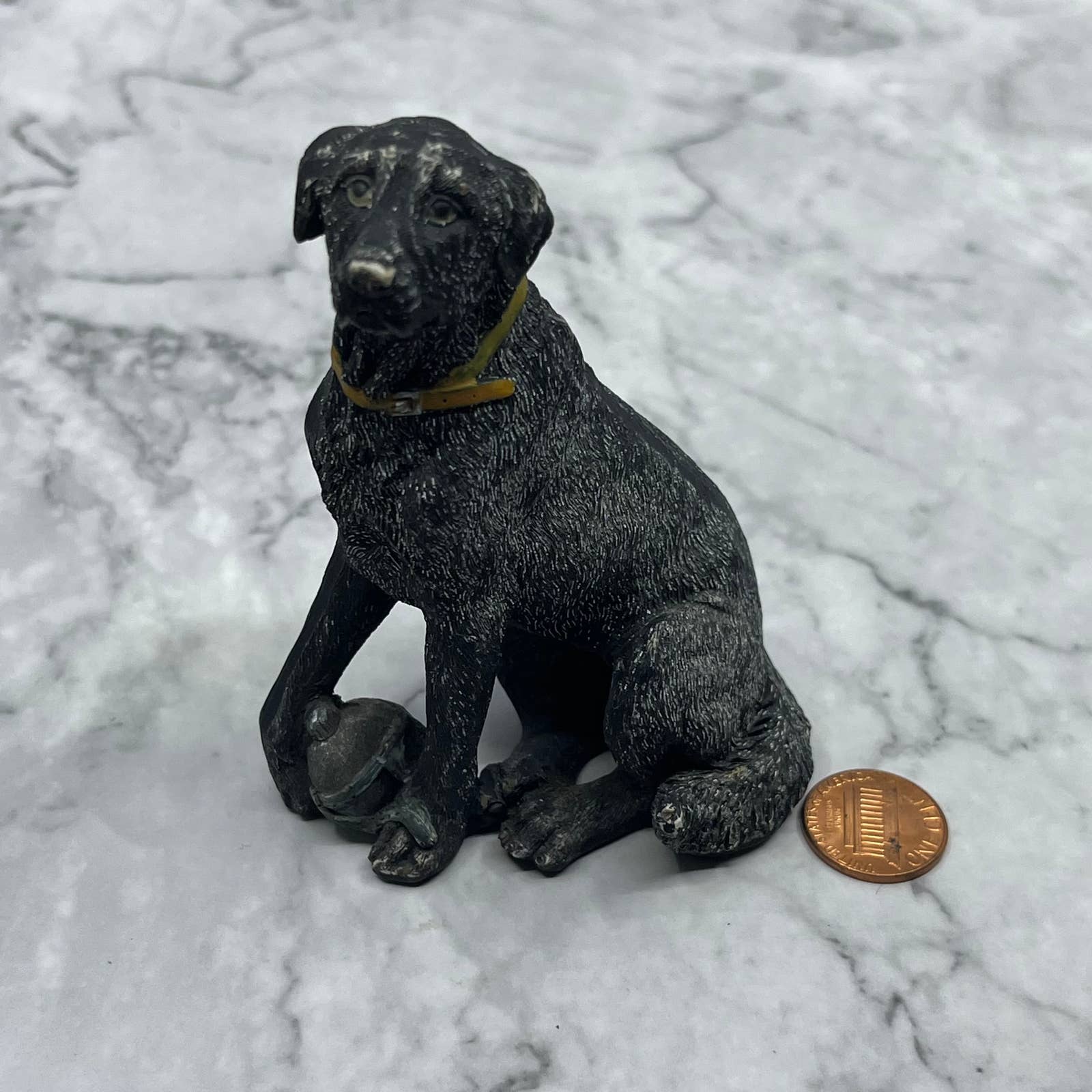 Vintage Hand Painted Ceramic Black Lab Dog Figurine 3.5” TE2