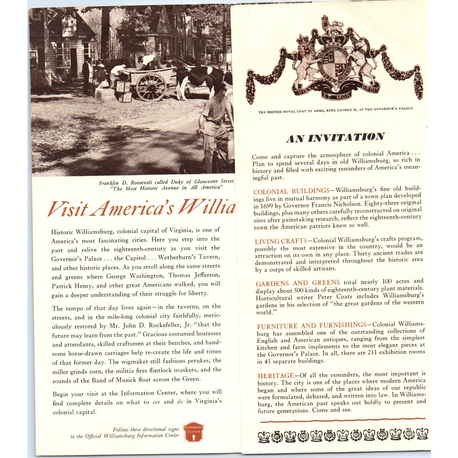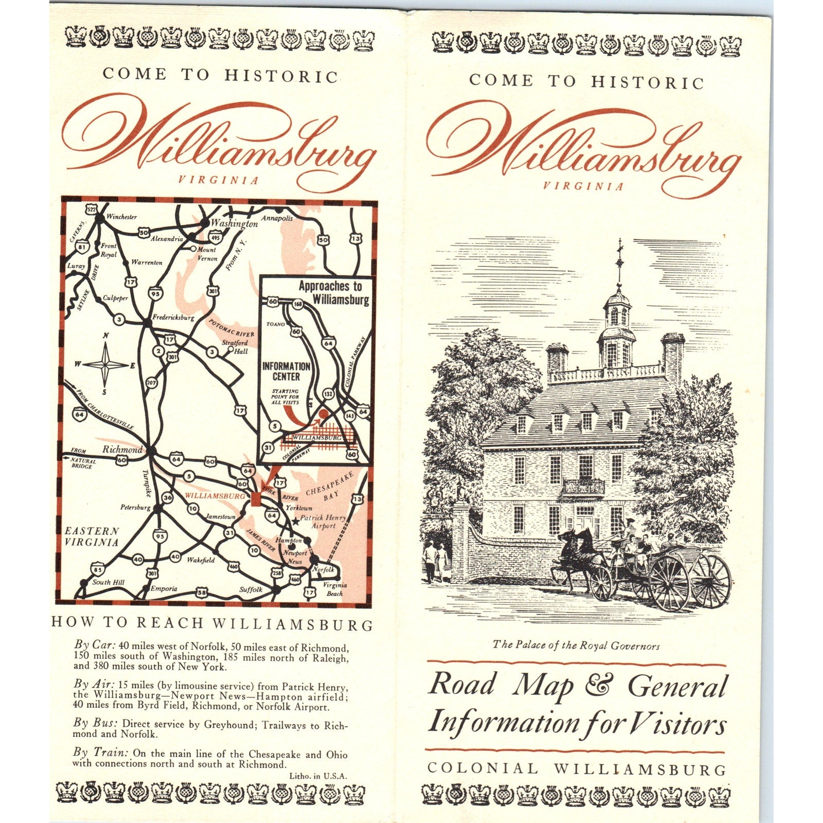 Vintage Historic Colonial Williamsburg Virginia Map & Brochure TF4-B3
