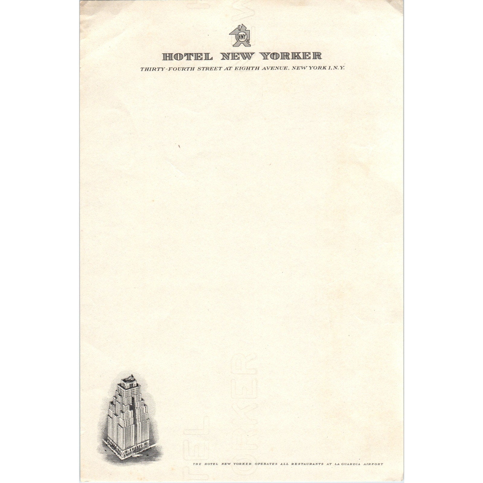 Vintage Hotel New Yorker Blank Letterhead AD8-R7