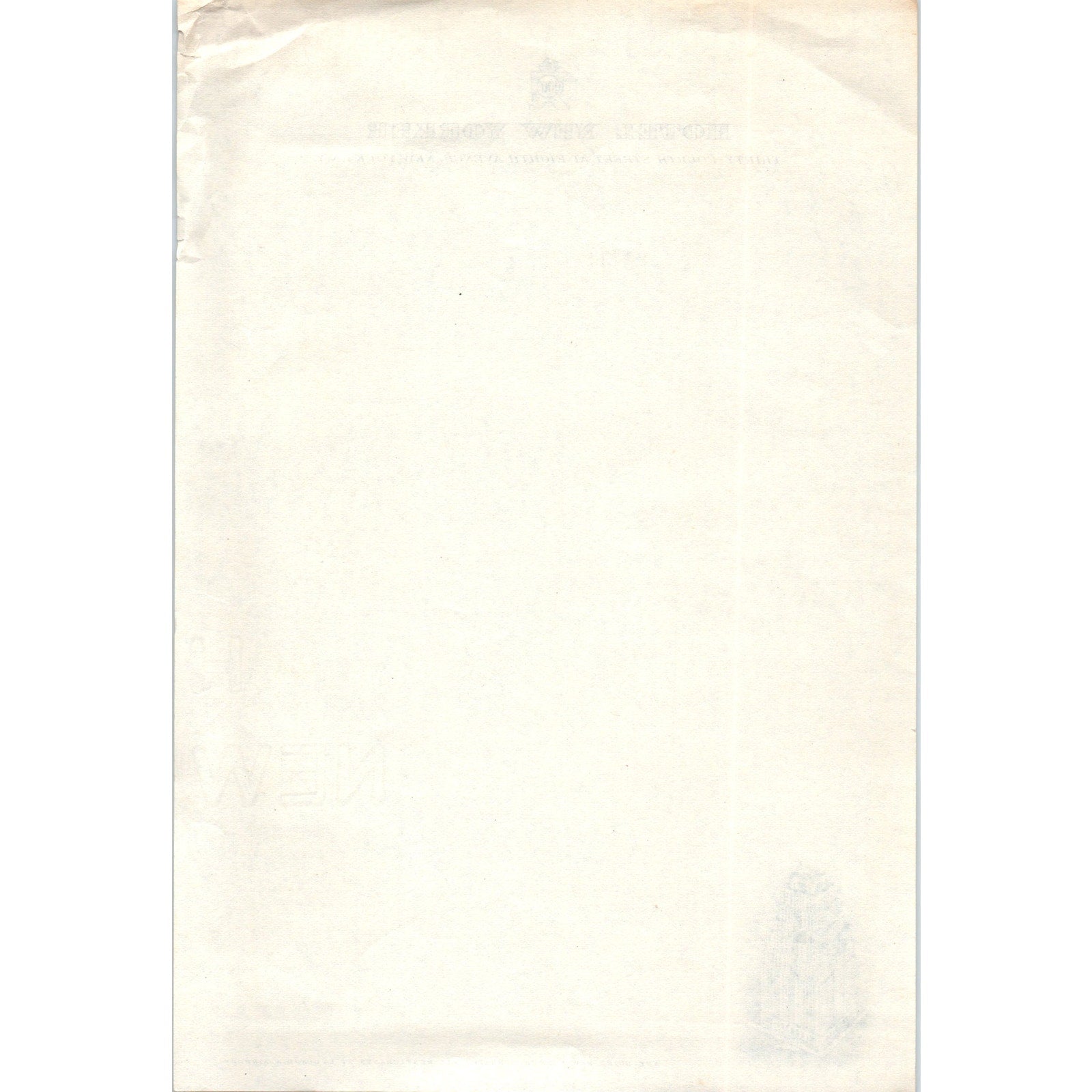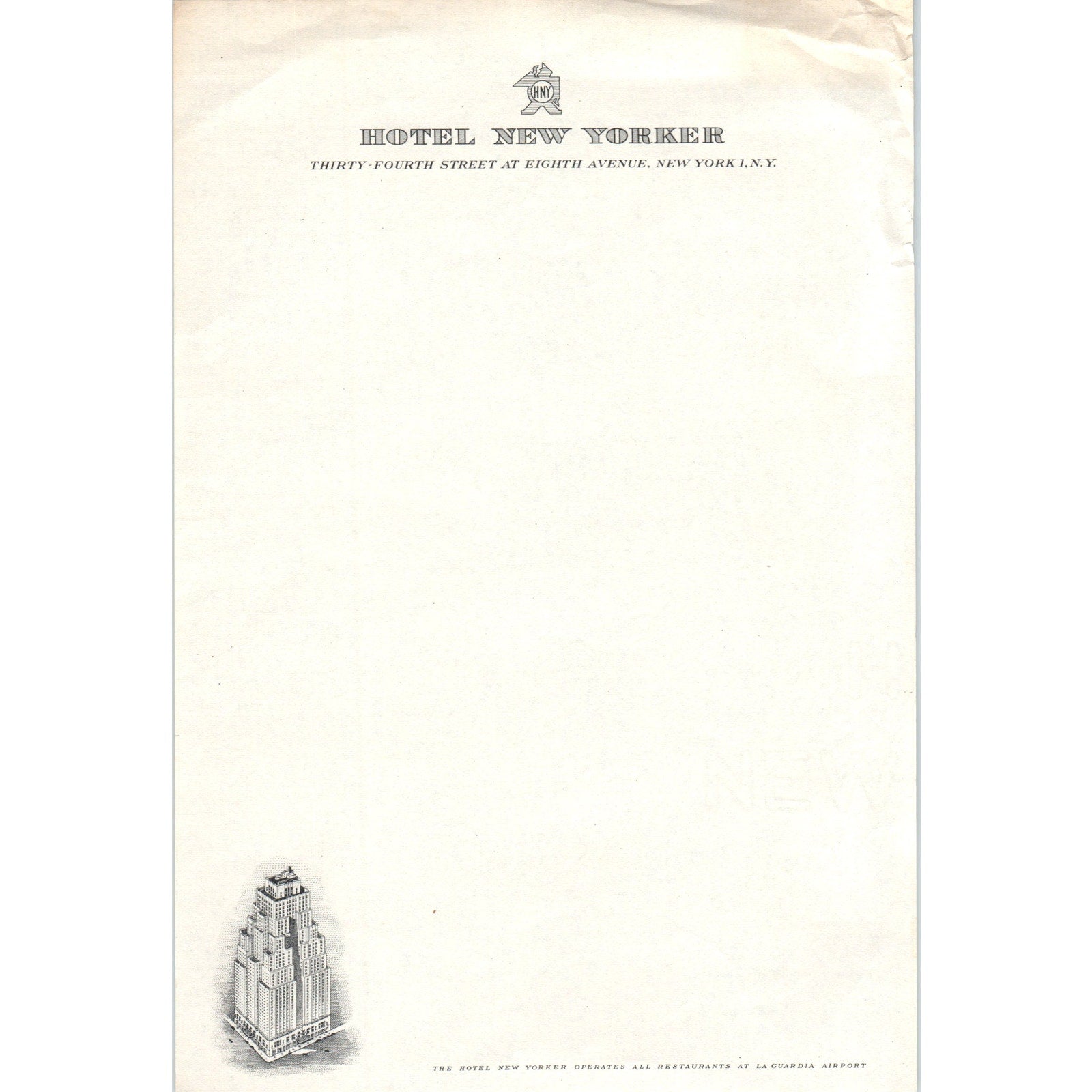 Vintage Hotel New Yorker Blank Letterhead AD8-R8