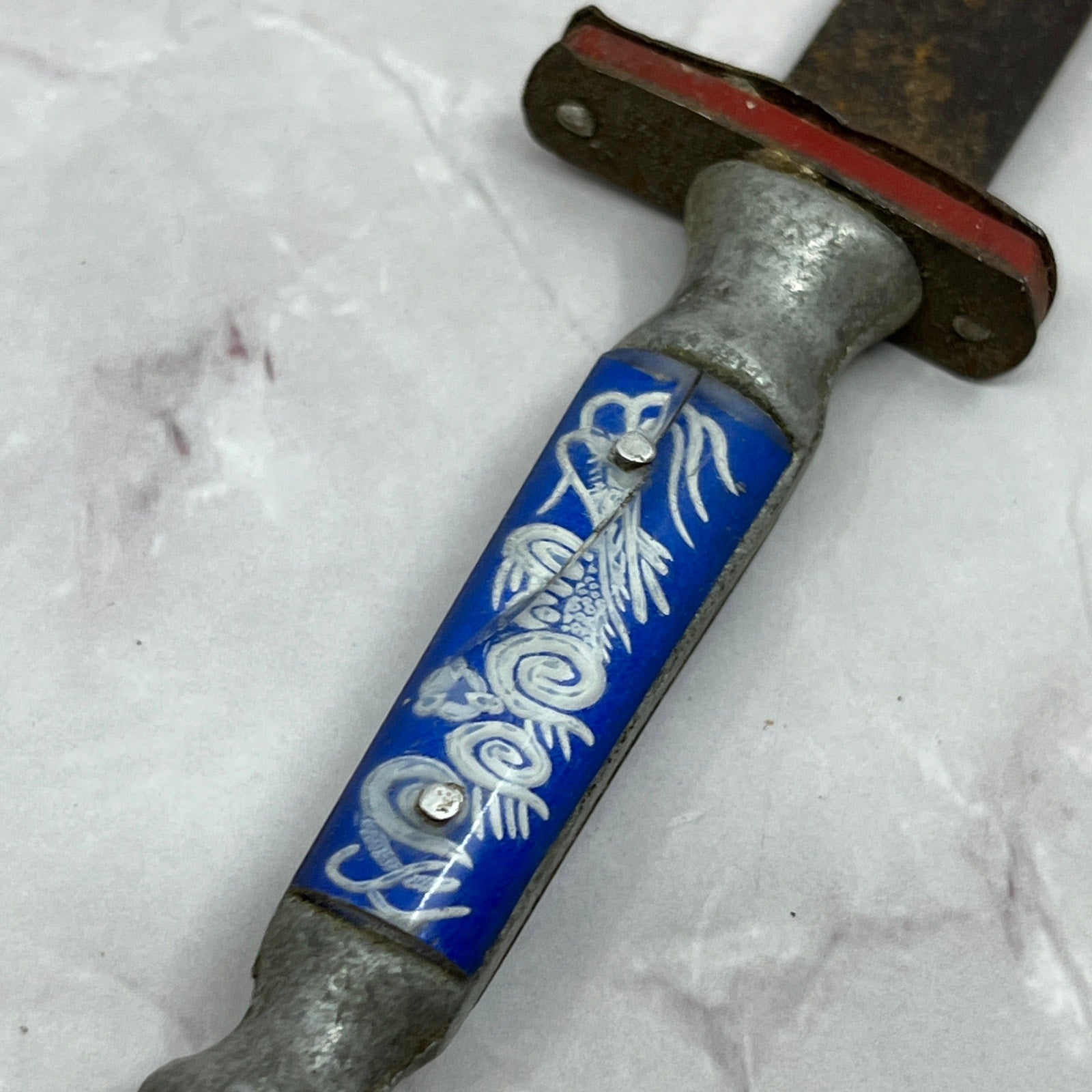Vintage Japanese Metal & Blue/White Lucite Letter Opener 7" SC1