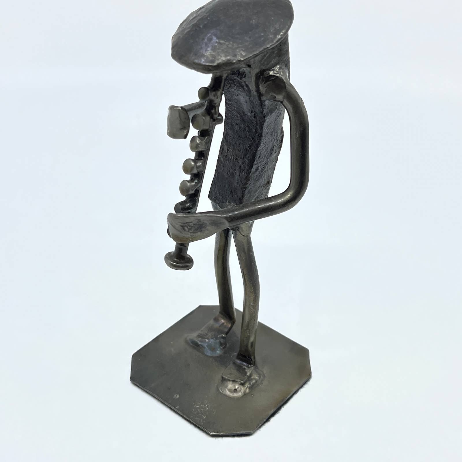 Vintage Jazz Clarinet Player Metal Sculpture Railroad Spike Art 6" TC8