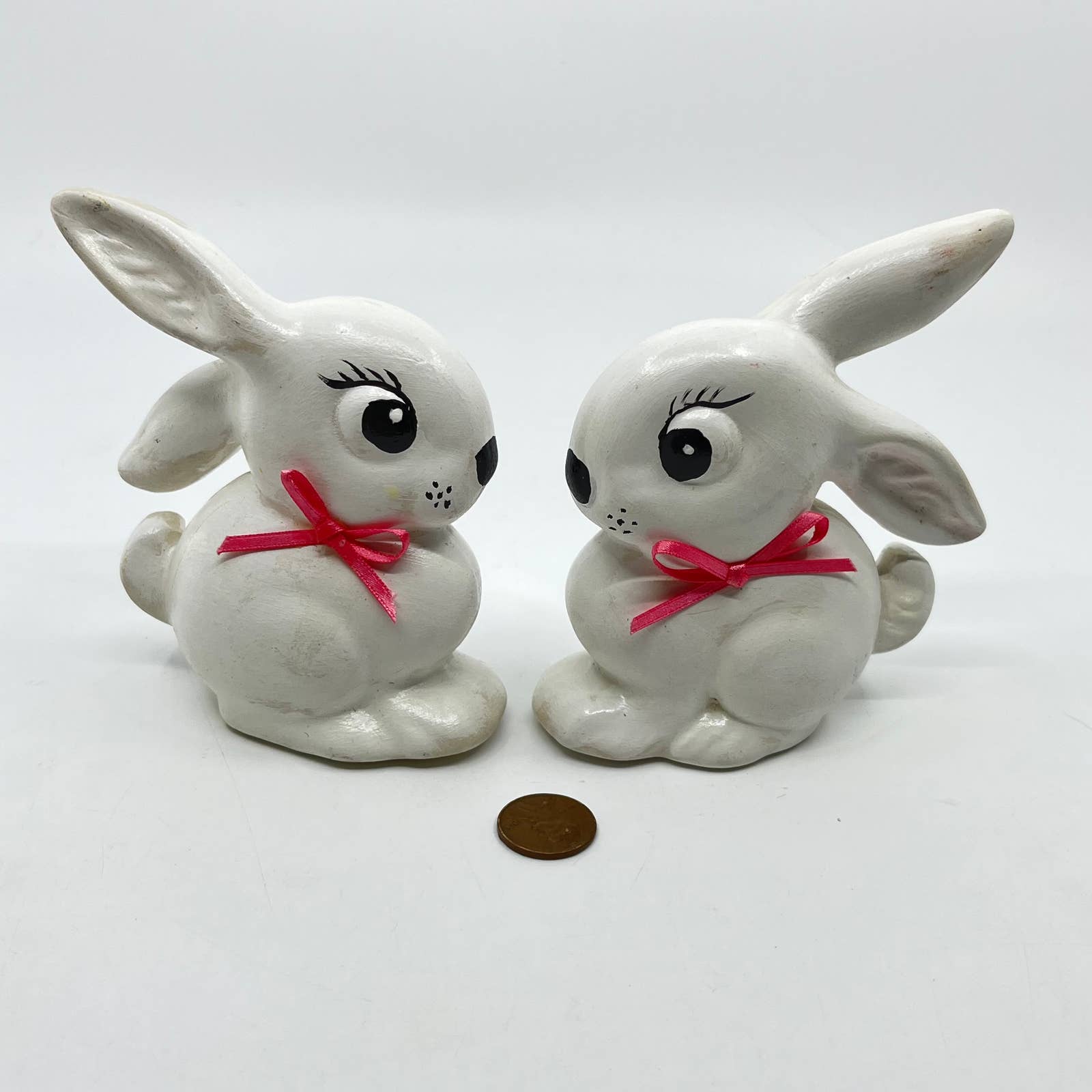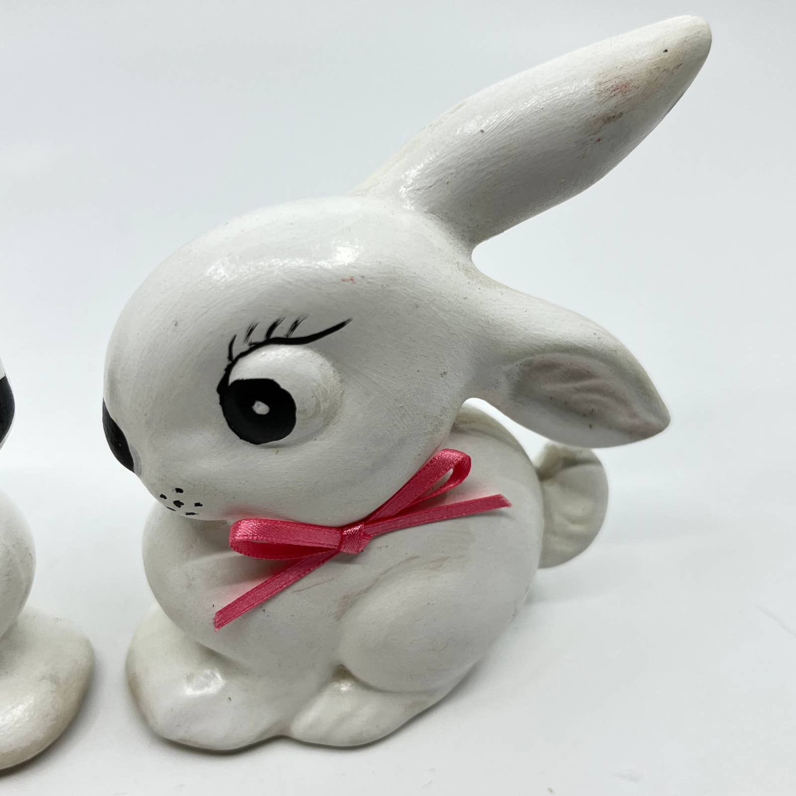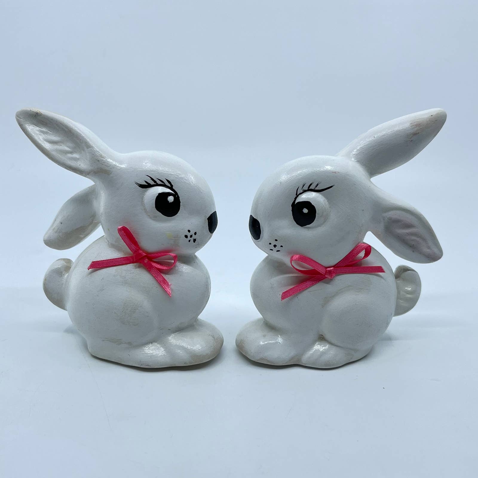 Vintage Kitsch Ceramic Hand Painted Easter Bunny Set of 2 TE7